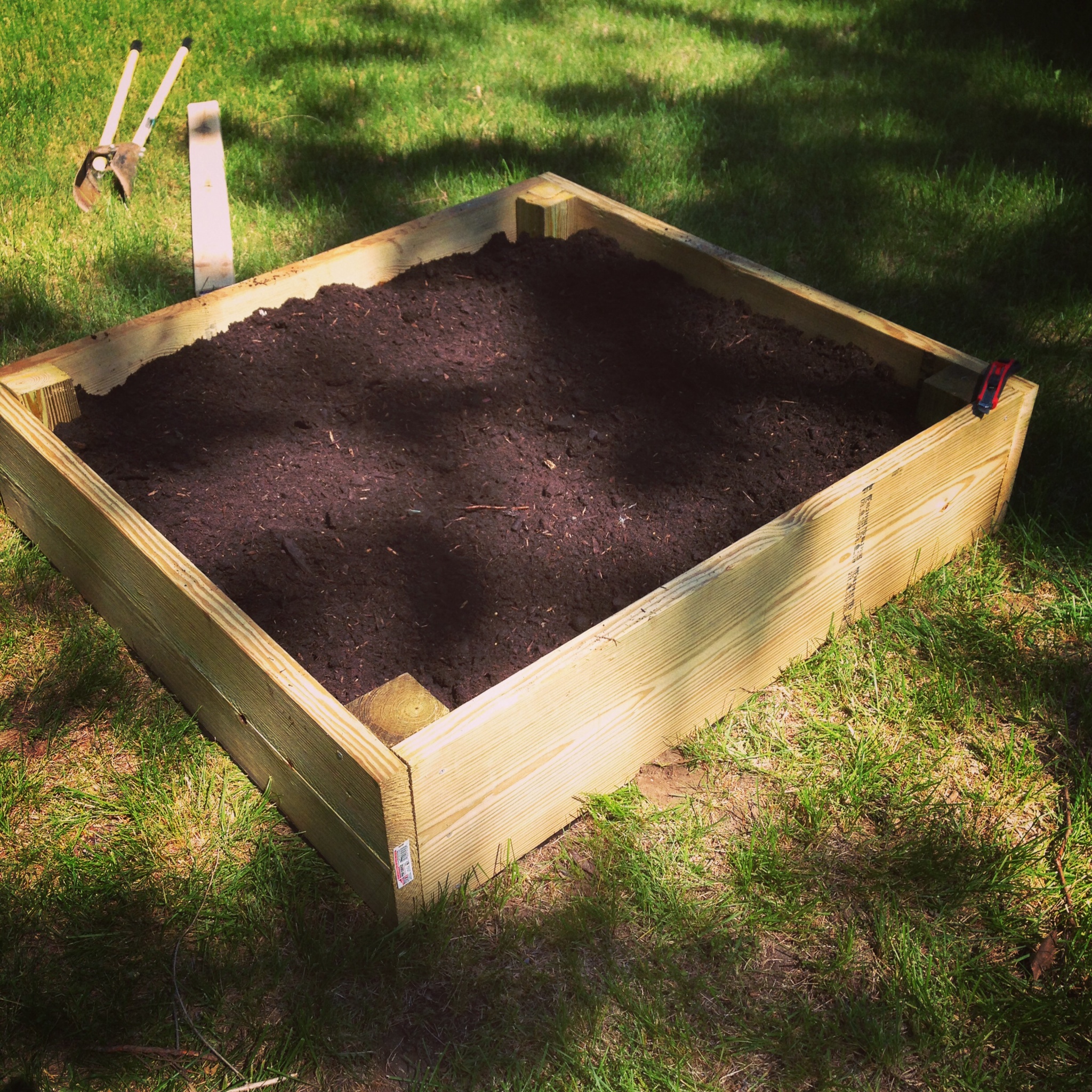 When I got up this morning that planter box was a small pile of lumber in my garage and the 450 pounds of dirt inside of it were in my car in the driveway, so I figure I’ve accomplished all necessary Grown Up Shit for the weekend. Note the post hole digger in the background; the posts in the corners are six inches deep in the ground, so the box ain’t going nowhere nohow. (Also note that one two cubic foot bag of soil claims to weigh 40 pounds. This is bullshit; maybe if it’s completely bone dry, and this soil was very definitely not bone dry. I’m estimating 75 lbs. per bag based on being too lazy to just weigh the shit and feeling like the internet’s estimate of 12o lbs. is insanely high.)
