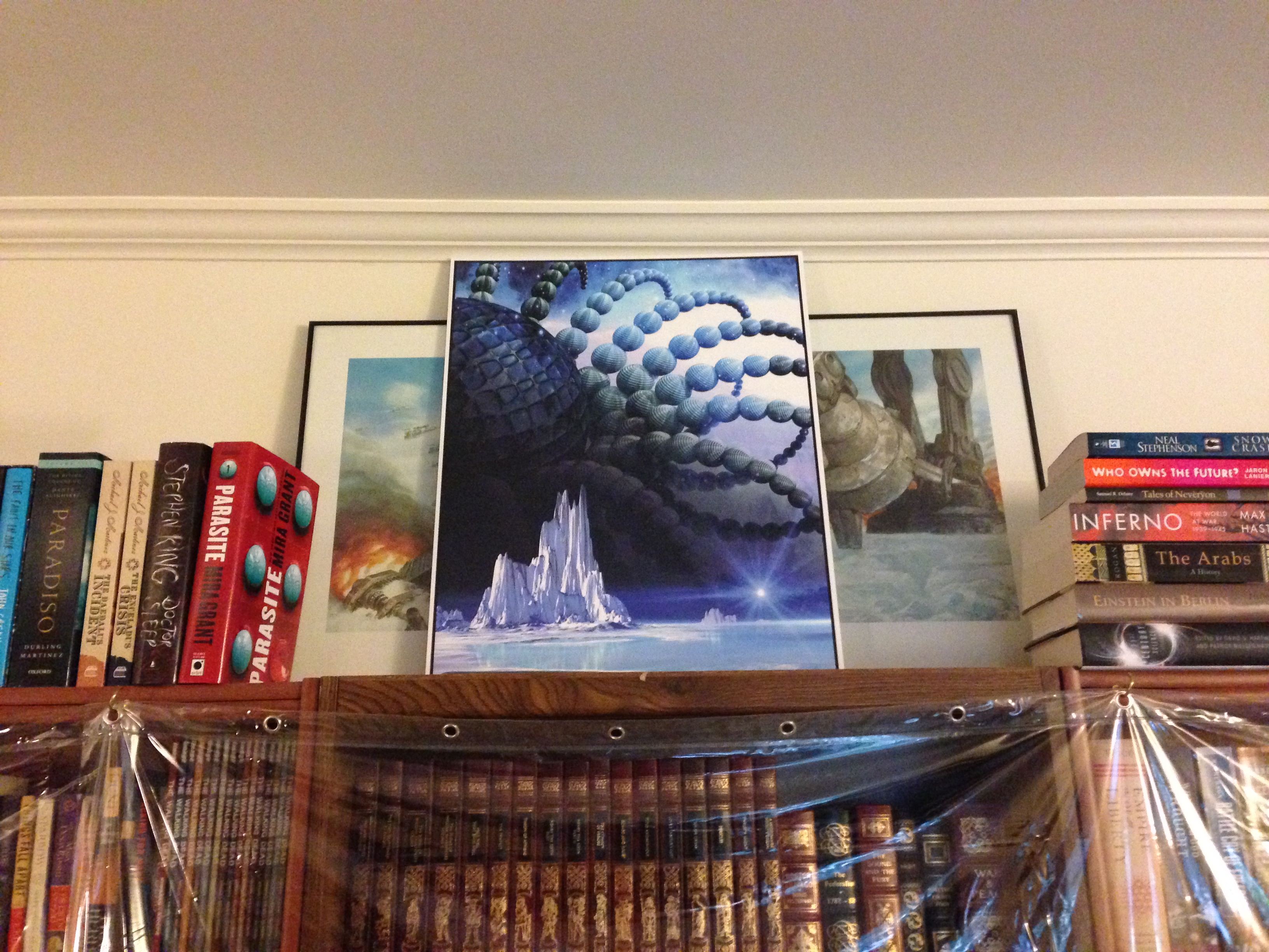 This is, quite obviously, not going to be its final resting place– for starters, I’m gonna frame it, and second, there’s no way it lives in front of my prized autographed Dave Dorman Hoth print.  But I thought it thematically appropriate to put the two of them together for the picture.  Plus the cats can’t get to it up there.  🙂