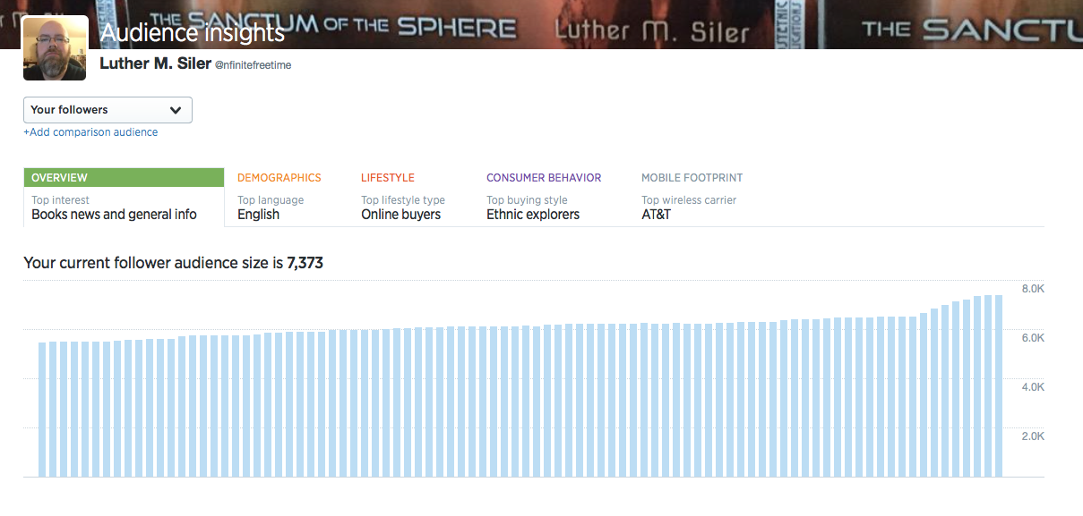 I spent the last couple of weeks trying to push my Twitter following again. I think I’ve decided to get up to 10K and then spend at least a month or two sitting back and monitoring activity levels before trying to fiddle with it again. I discovered that Twitter’s mucking about with their Analytics page again, and not in an entirely positive way, although some of the stuff is okay. But check this nonsense out: