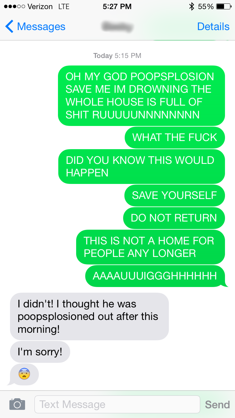 EDIT: Not a joke. This happened just as I was fiddling with tags. My wife is at the grocery, enjoying a few minutes of blessed solitude without our rectally-challenged toddler at her side: