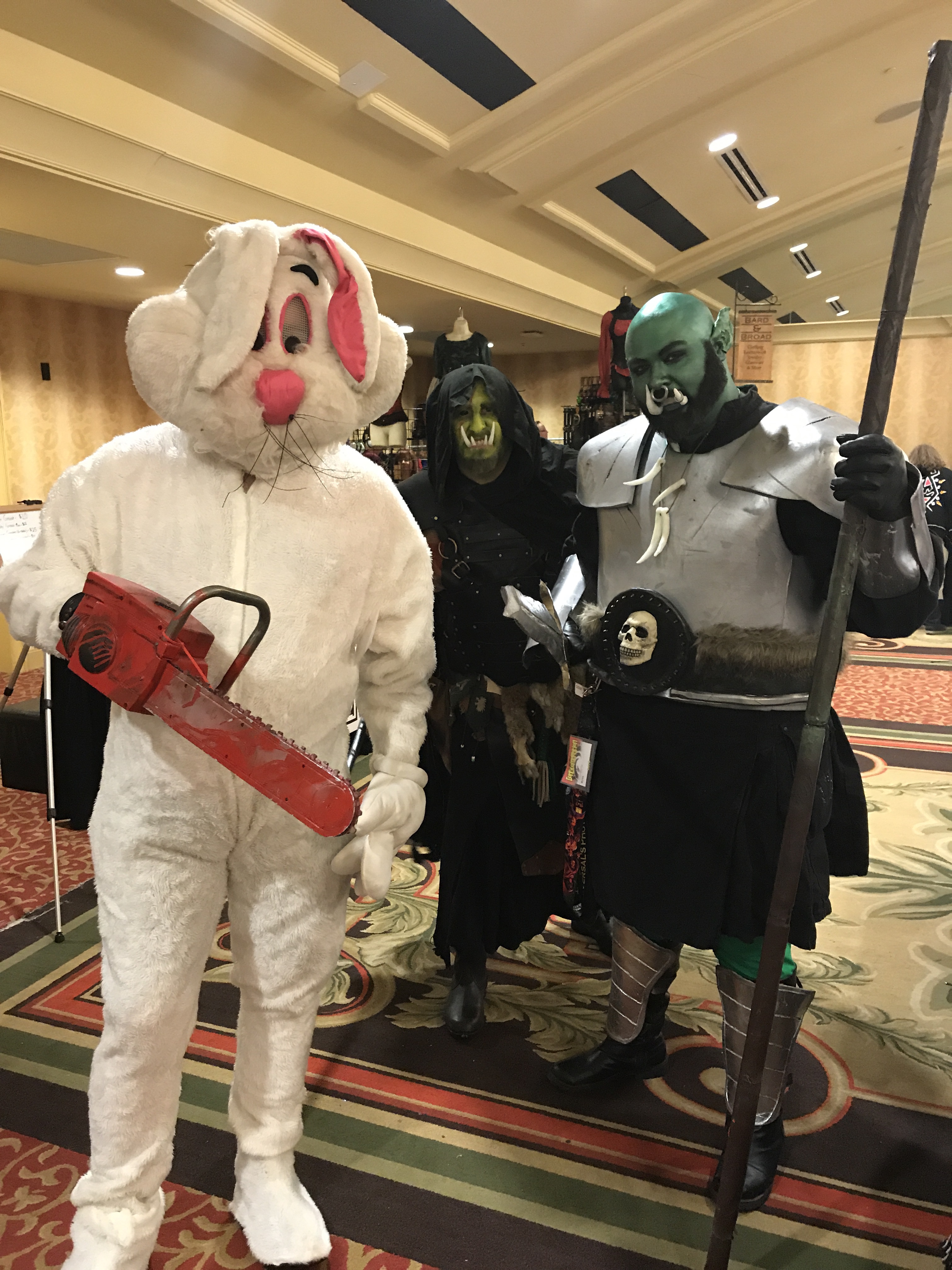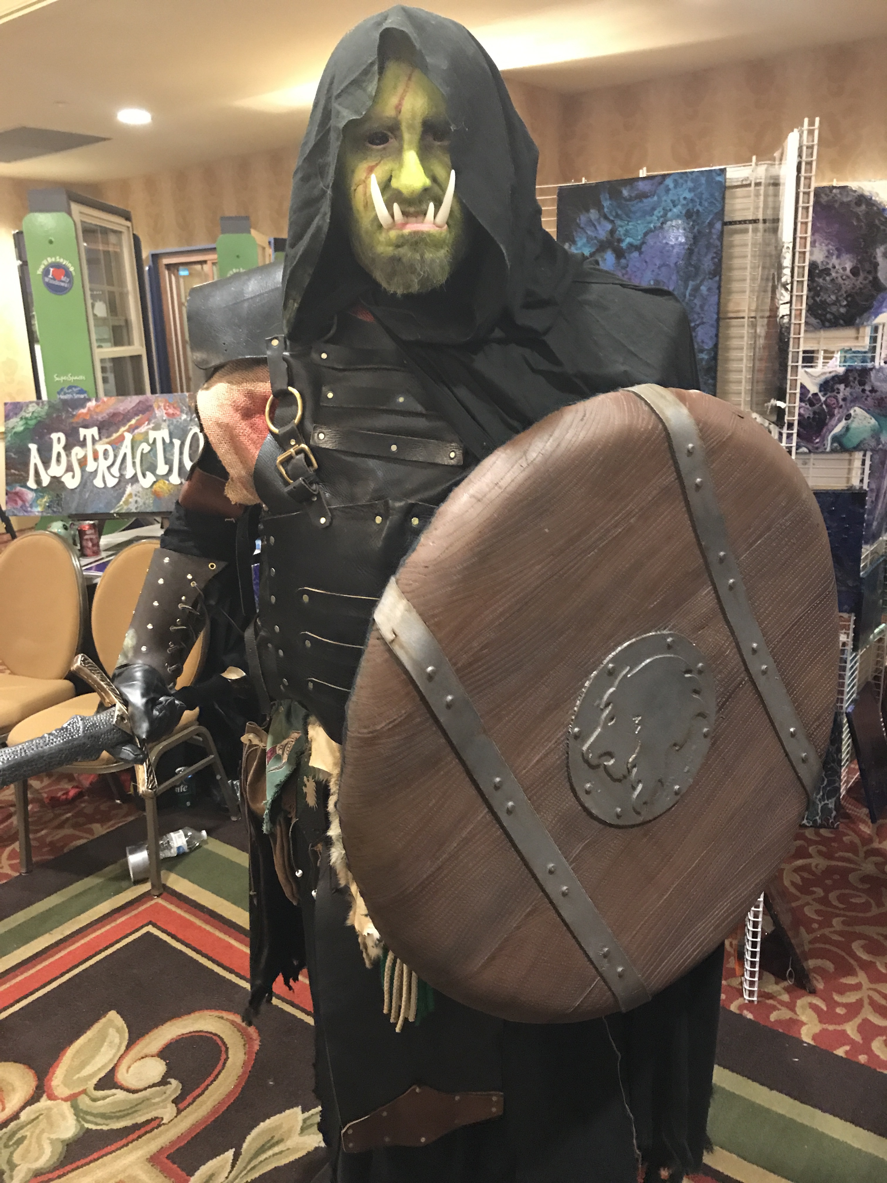 Anyway. The thing about being in an area that is much much much more conservative than what you’re used to is the weird phenomenon where motherfuckers will say absolutely anything to you if you’re a white guy and assume you’re just going to agree with it. And … fuck, did I spend a lot of time not starting, or at least not continuing, shit with people. Like the guy who had three different wildly offensive Second Amendment/ MAGA/ anti-Obama shirts, one for each day of the show, and kept insisting on parking himself right in front of me at my panels. Or the three or four people who randomly brought up wanting to shoot people if they find themselves in certain neighborhoods. And … shit. It just got to be too fuckin’ much sometimes, y’know?