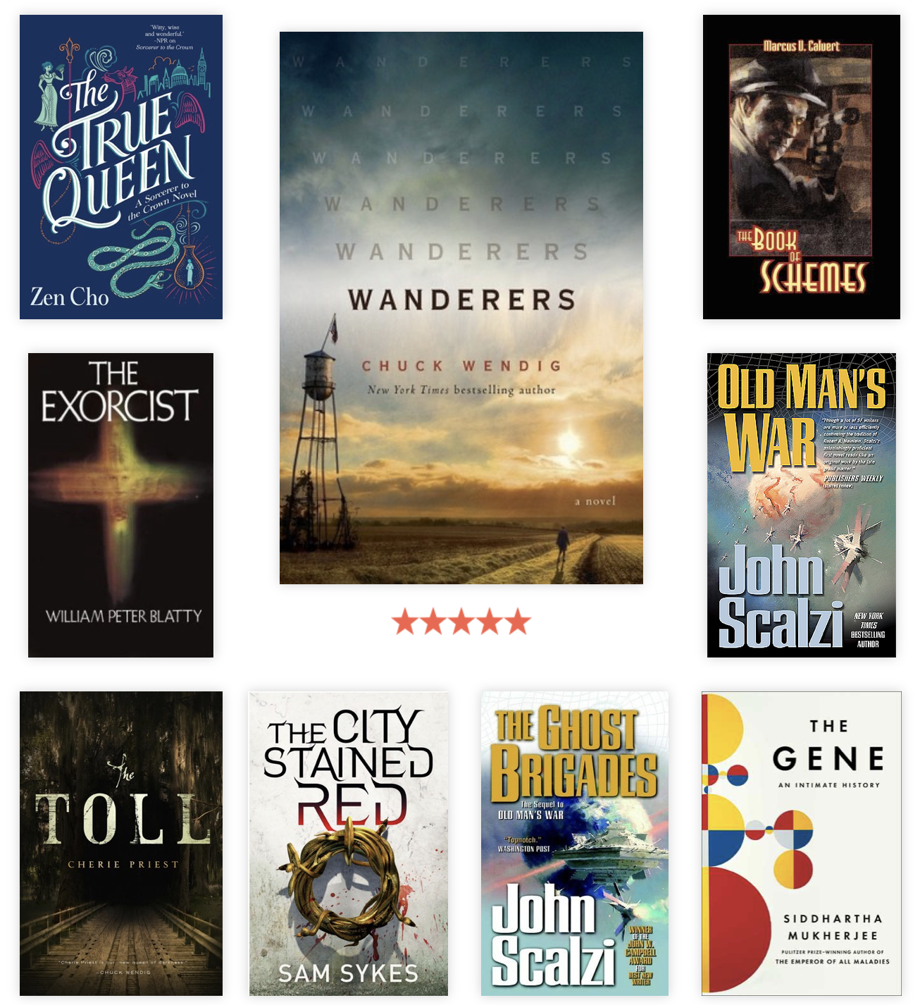 4. WANDERERS, by Chuck Wendig. The second book on this list– well, chronologically the first I read, but whatever– that I’d describe as a massive level-up by the author, Wanderers has been described, not unfairly, as “Chuck Wending writes The Stand,” and it’s on par with that book, which is one of King’s best. Wanderers is interesting in that the world-ending plague doesn’t start to be a thing until a good chunk of the way through the book; until then, it’s a horror mystery about a group of steadily-growing group of sleepwalkers who are heading … well, somewhere, and the concerned family members and CDC people who are staying with them and trying to discover what’s wrong. It’s three times as long as anything else he’s ever written and I loved every word of it; there aren’t a lot of books on the list this year that I’d describe as horror novels, but Wendig hits this one out of the park. Even if you’ve read something by him in the past and haven’t enjoyed it, this is different enough from his previous work that you should check it out anyway.