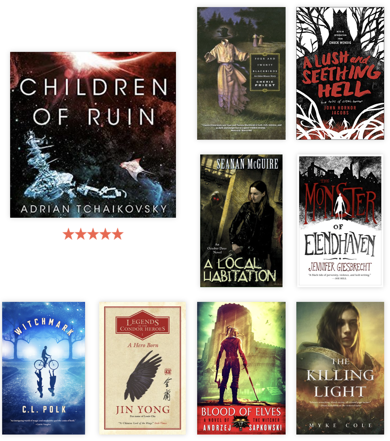 2. CHILDREN OF TIME and CHILDREN OF RUIN, by Adrian Tchaikovsky. I read both of these books this year and they were both amazing, so following on the fine and previously-established tradition of “my list, my rules” we are going to honor both books with the #2 slot for 2019. The series is about a posthuman future where Earth is gone and the only human beings remaining may well be the characters in the book. Children of Time follows the entire evolutionary path of an intelligent species of Portiid spiders, and Ruin adds two more alien species to the mix along with the handful of human characters. The amazing thing here is Tchaikovsky’s amazing talent for writing what feel like genuinely alien cultures; he includes just enough Earth touchstones to give the reader something to grab ahold of and everything else is there to be puzzled out. Children of Time is an amazing enough achievement on its own; the fact that Children of Ruin is equally good is incredibly impressive.