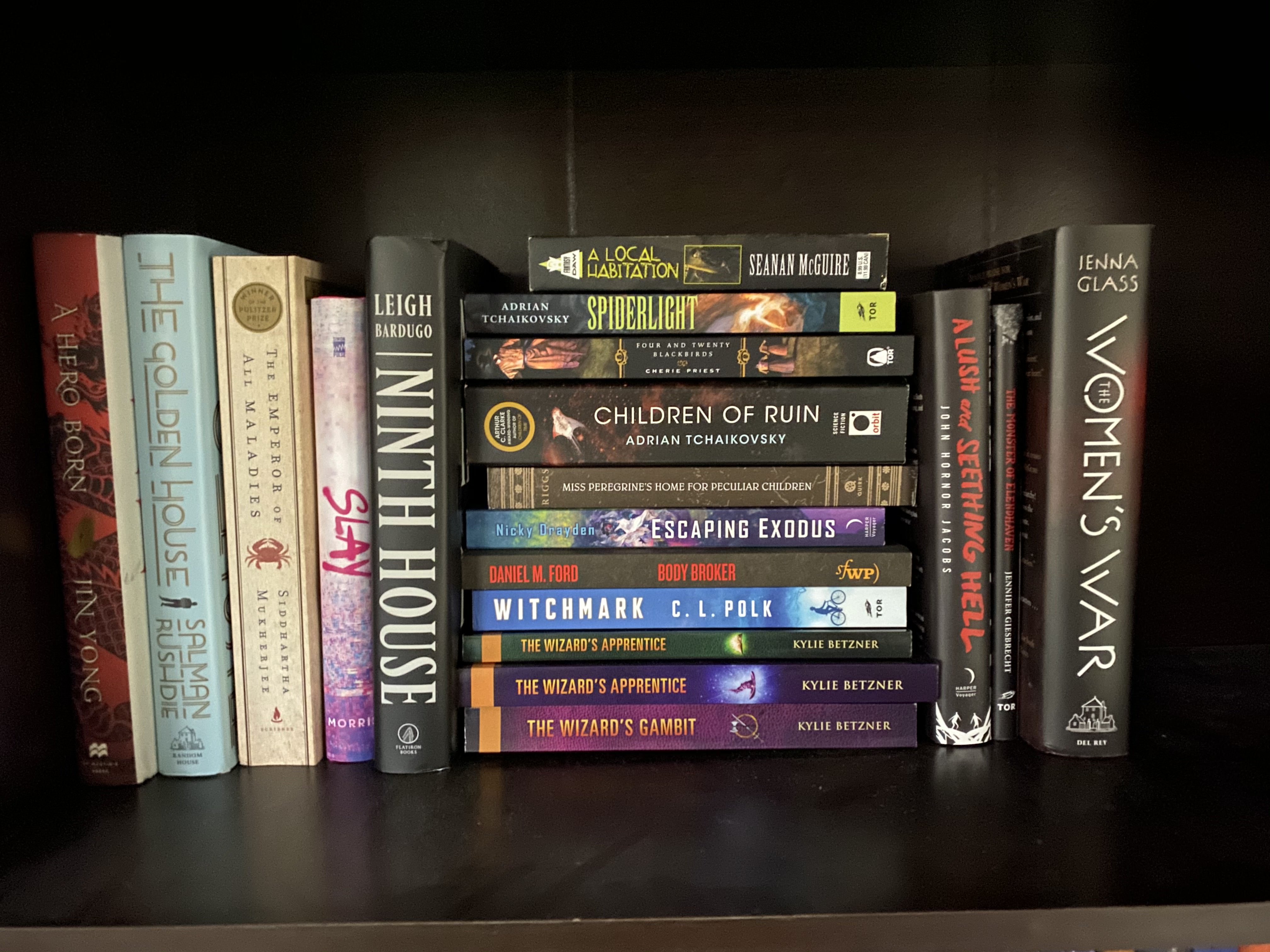 I said something last month about how my unread shelf was completely out of control. There are the exact same number of books in this photo as there were last month. I am terrible at this, apparently. 🙂
