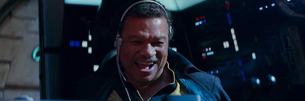 (I am pleasantly surprised that he is not in the yellow shirt that the character wore in Solo during this scene; he’ll have it on later but at least we’re not pretending that a man who once had an entire closet dedicated to his capes has only been wearing one outfit since the end of Return of the Jedi. Lando feels like Lando here; there’s none of the Harrison-Ford-playing-Harrison-Ford nonsense from TFA. It’s not a long scene, but it’s nicely done.)