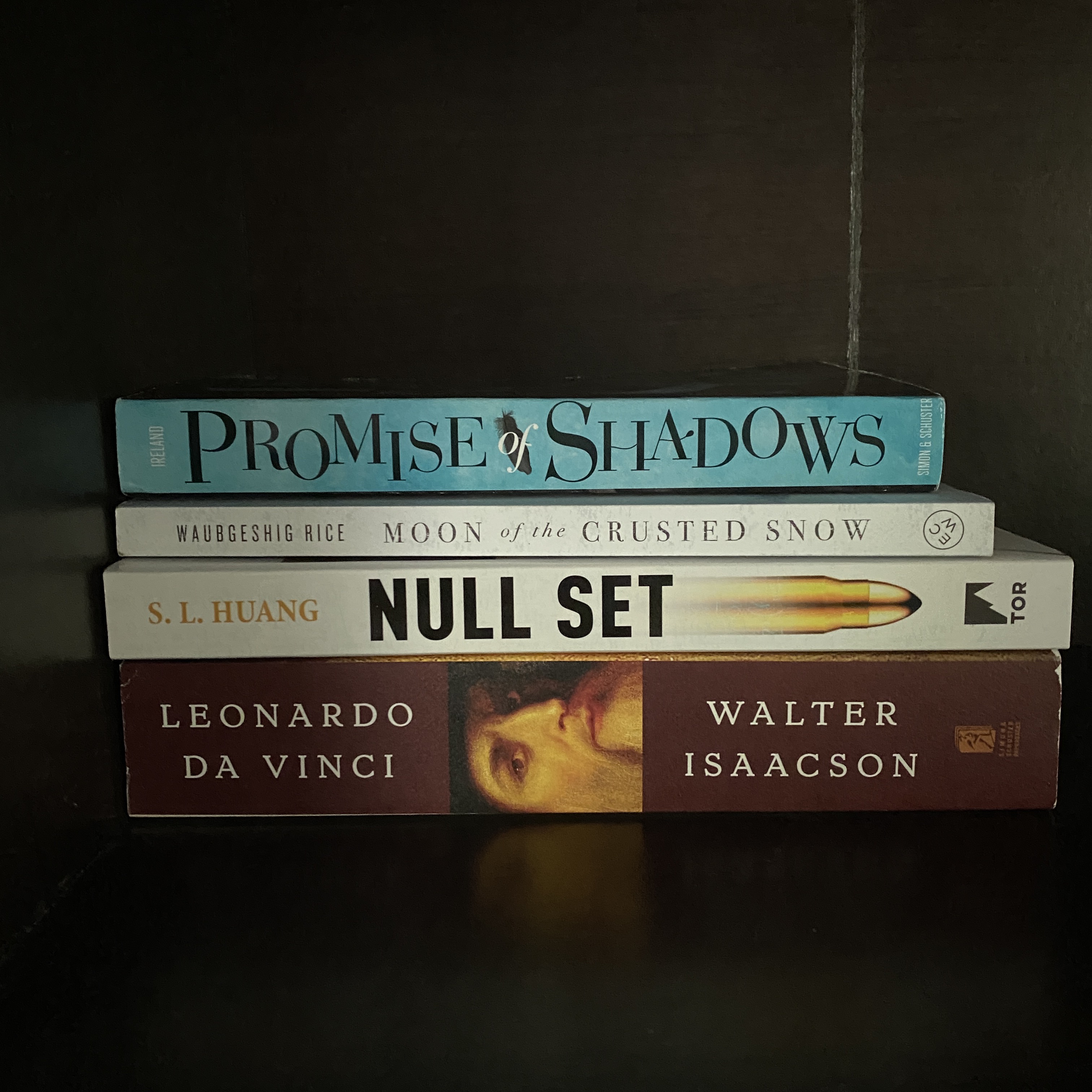 Guys. My unread shelf is under control. When you consider that it looked like this a month ago? I managed to go an entire month without buying any books. That da Vinci biography is gonna take a minute but I’ll probably be done with the other three in a week or so.