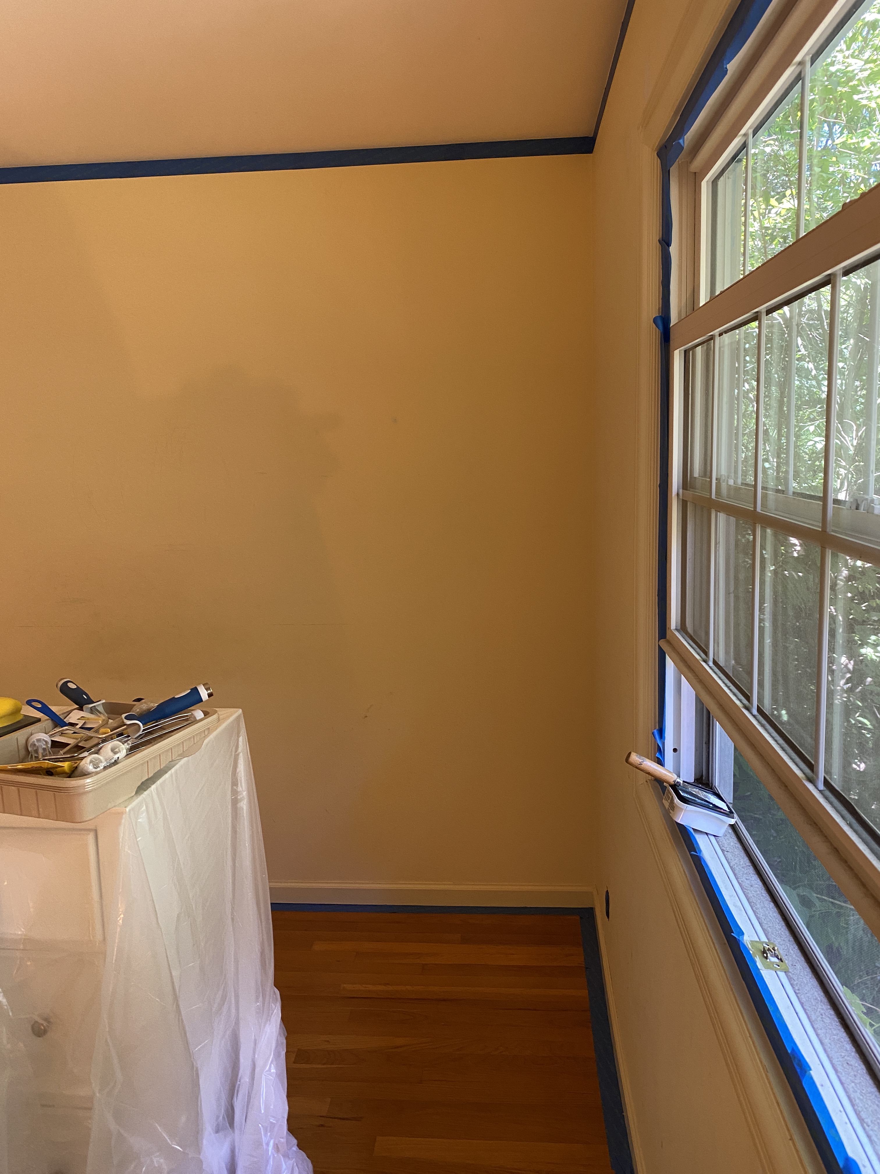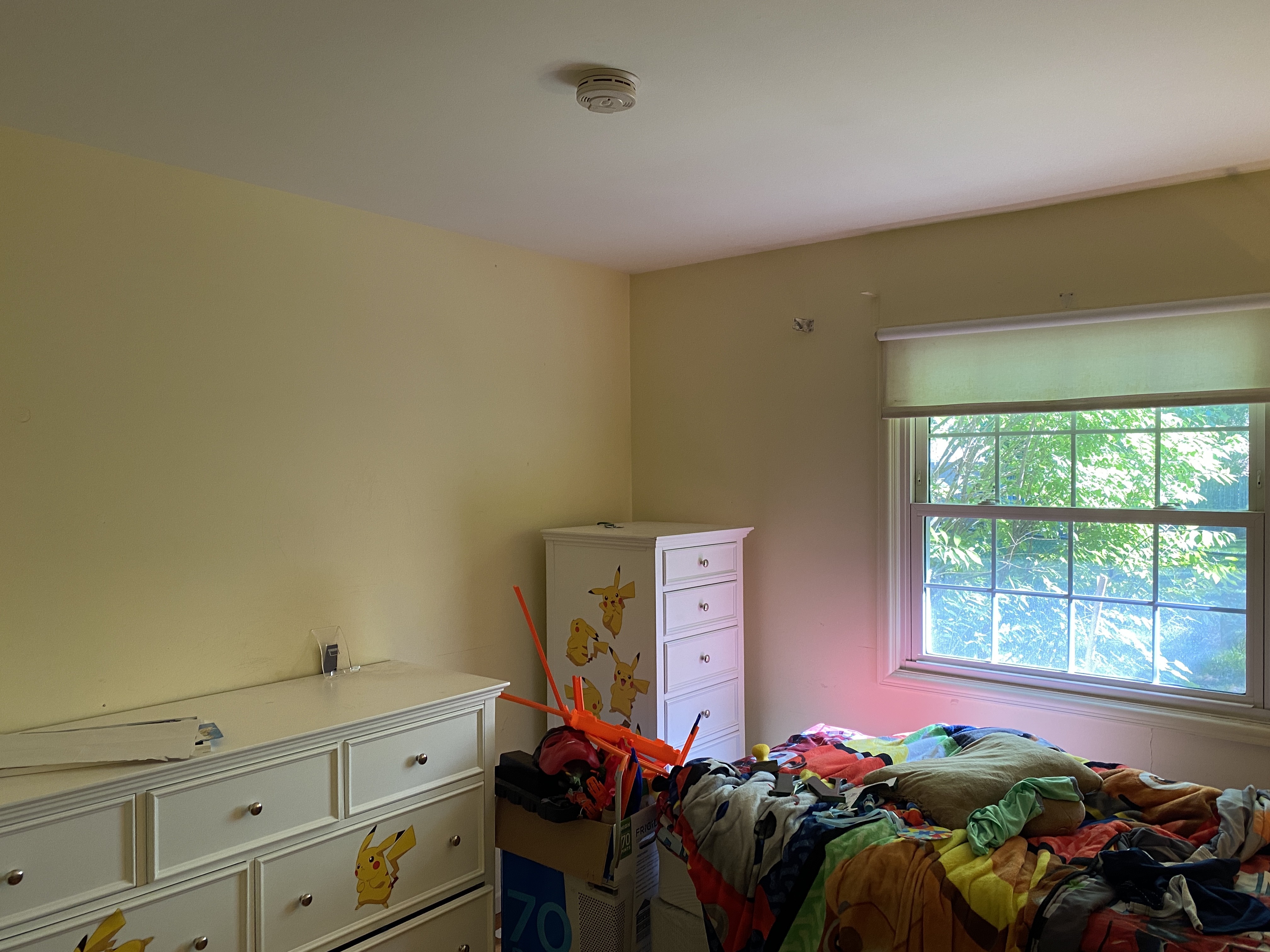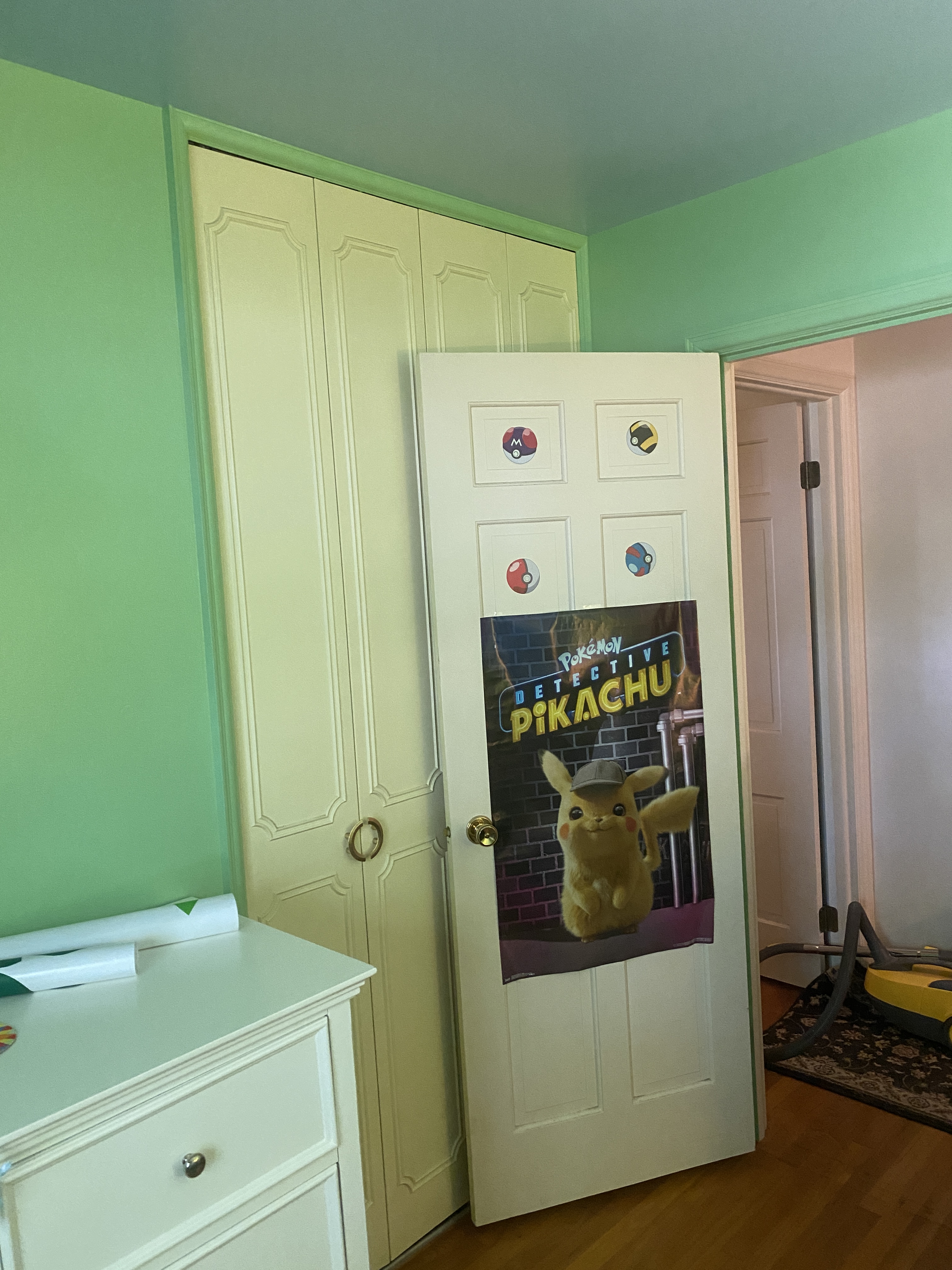 CONTROVERSIAL DECISION: we decided to leave his door and the closet door alone. While neither of us liked the yellow in the room, with everything repainted I actually like how they look, and since they would have been a pain in the ass to paint anyway we decided to stick with the original color. I don’t love how it looks next to the white furniture but whatever.