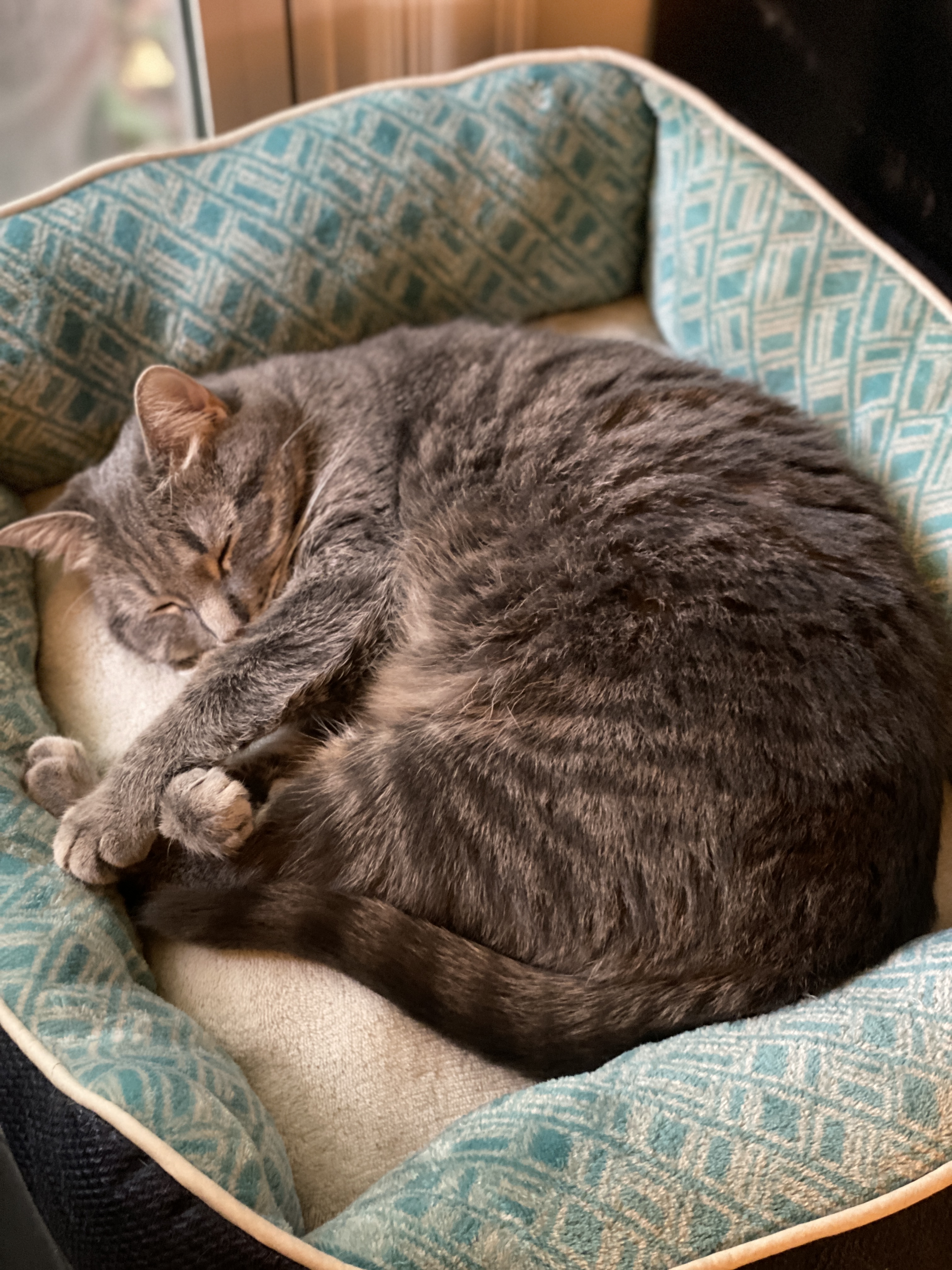 We need to get him another lamp today, because the room is a bit darker than it used to be, but that’s the last touch.