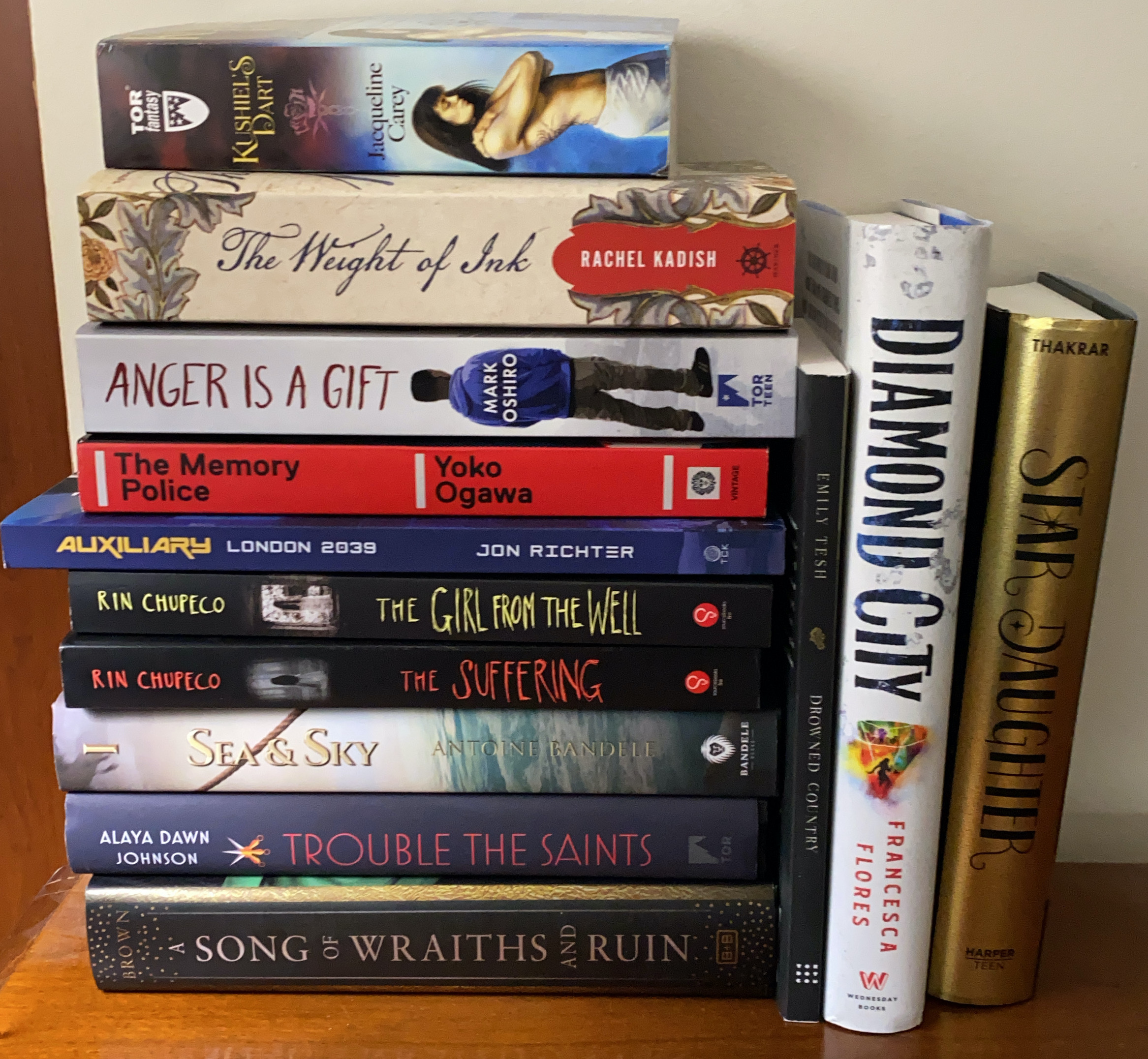 Book of the Month: Man, this month is super tough. I’m going to have to go with Anger is a Gift, but ask me tomorrow and I might choose The Girl from the Well or A Song of Wraiths and Ruin instead, and the only reason The Weight of Ink isn’t in the running is that I haven’t finished it yet.