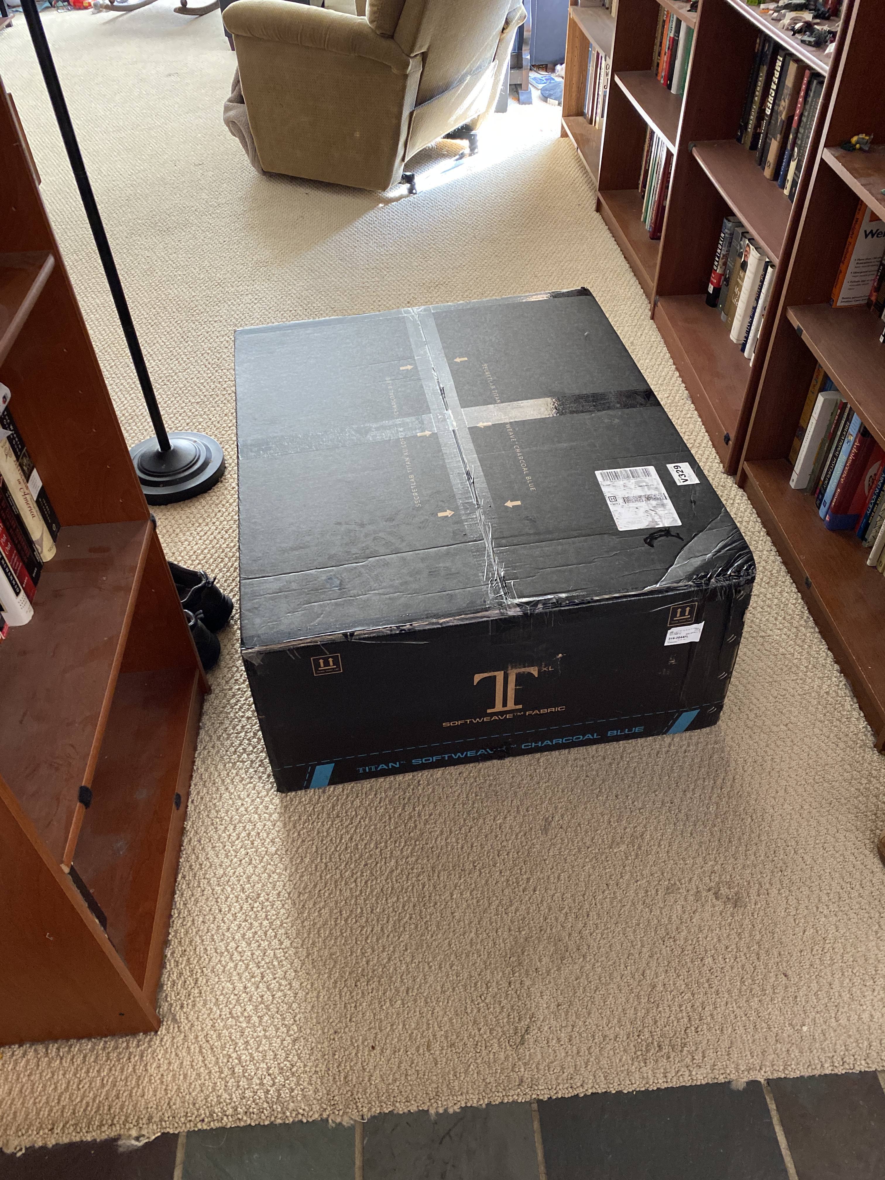 That box probably weighed fifty pounds holy shit. I thought “Nah, it couldn’t have been that much” and looked up the specs? The chair weighs eighty pounds. It’s rated for users up to 390 pounds, so I can get as fat as I want. The FedEx dude actually hiked the thing up onto one shoulder to get it to the house and then volunteered to put it inside for me (I saw him coming and opened the door, since I thought I’d have to sign for it) and holy shit am I glad he did because it would have been a damn struggle for me to get inside.