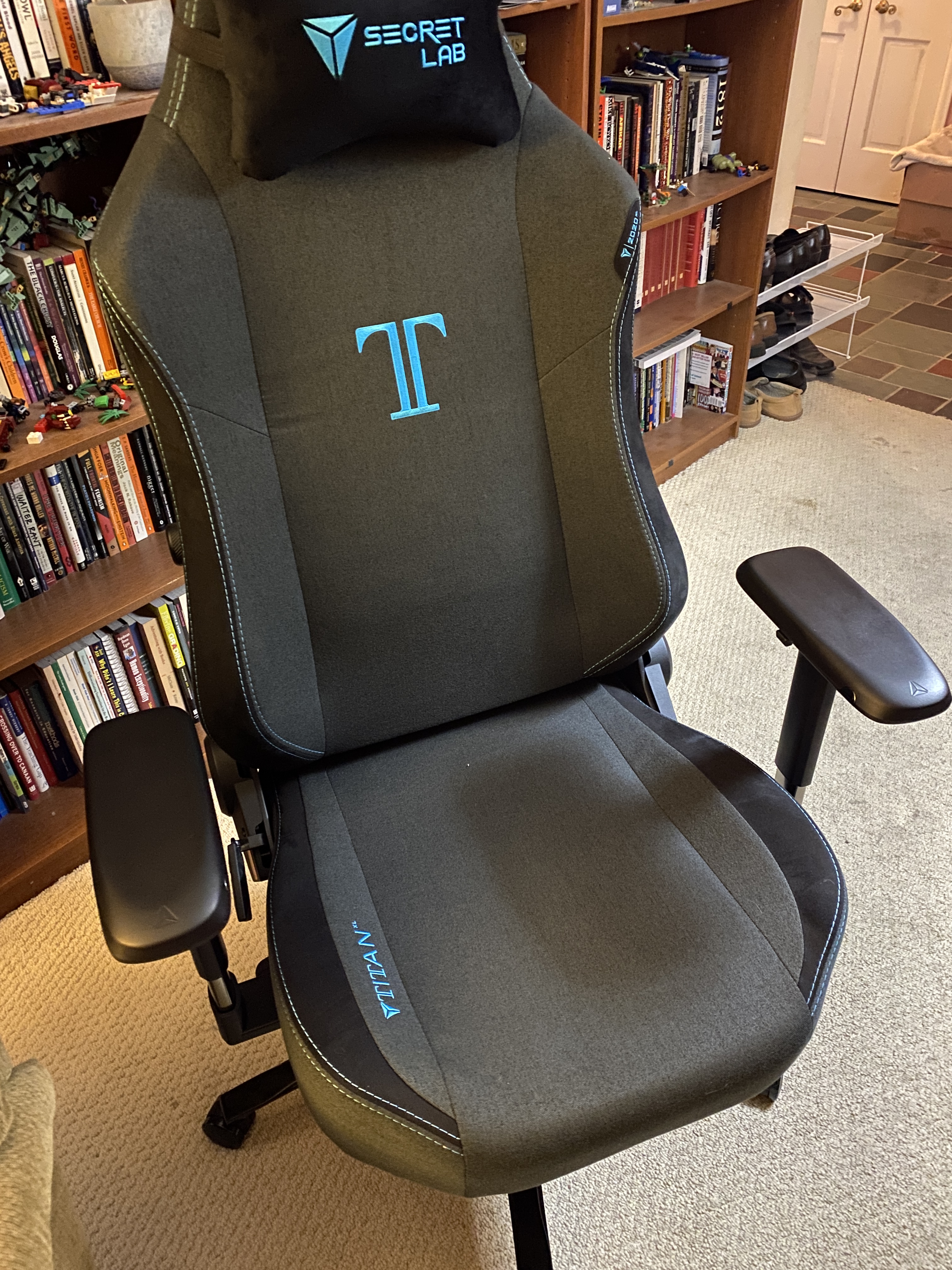 The Lever of Doom is there so that you can recline the seat back, which I’m actually not going to do all that often. It reclines to damn near flat, which seems … maybe not advisable, given how centers of gravity work? I dunno. They seem to think it’s okay to sleep in this chair but I don’t see myself doing it that often.