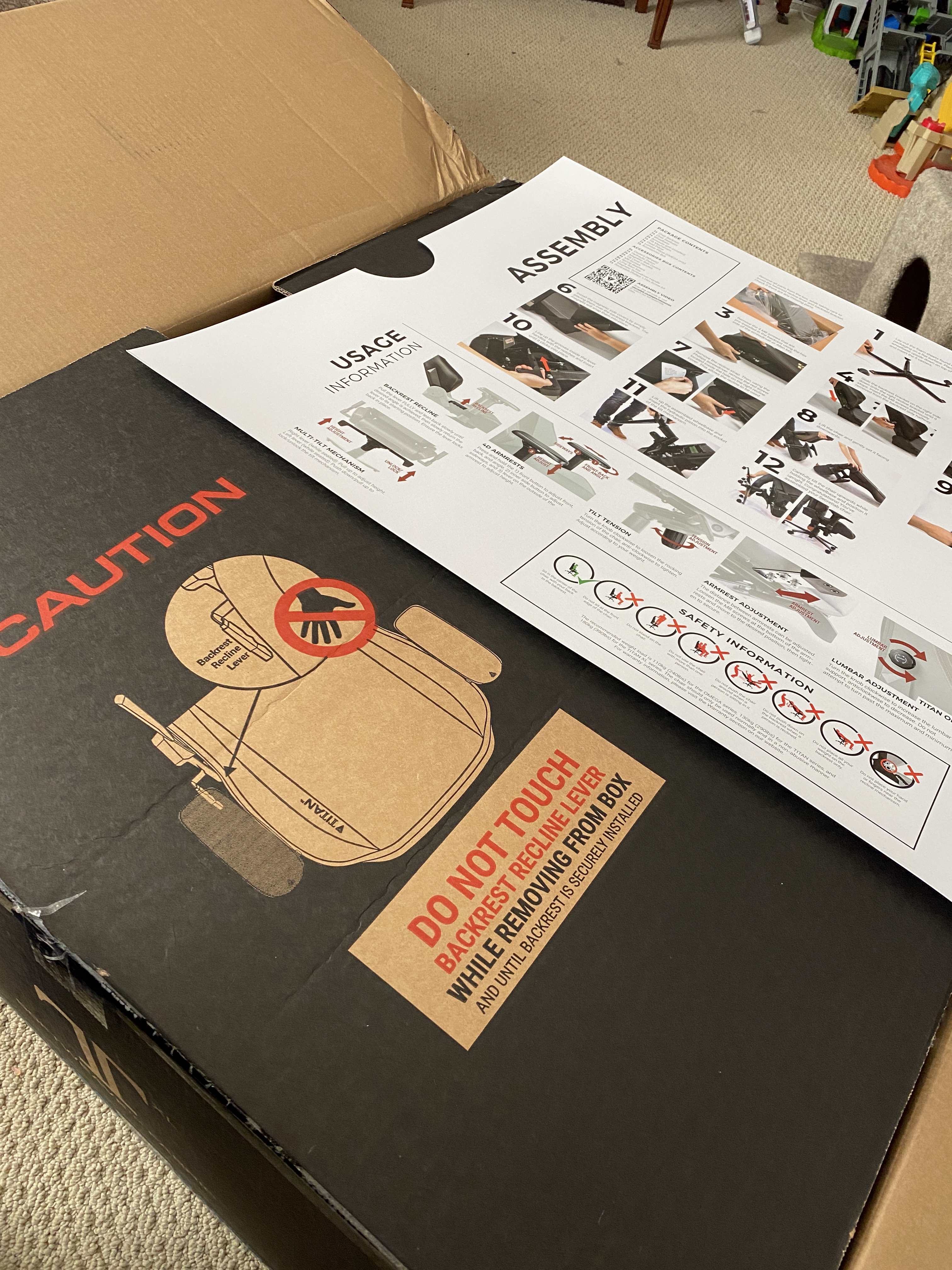 So, okay … don’t touch the backrest recline lever. I got you. Don’t need to be told twice. I don’t know why I’m not supposed to touch the backrest recline lever, but I’m not gonna argue with my brand-new chair.