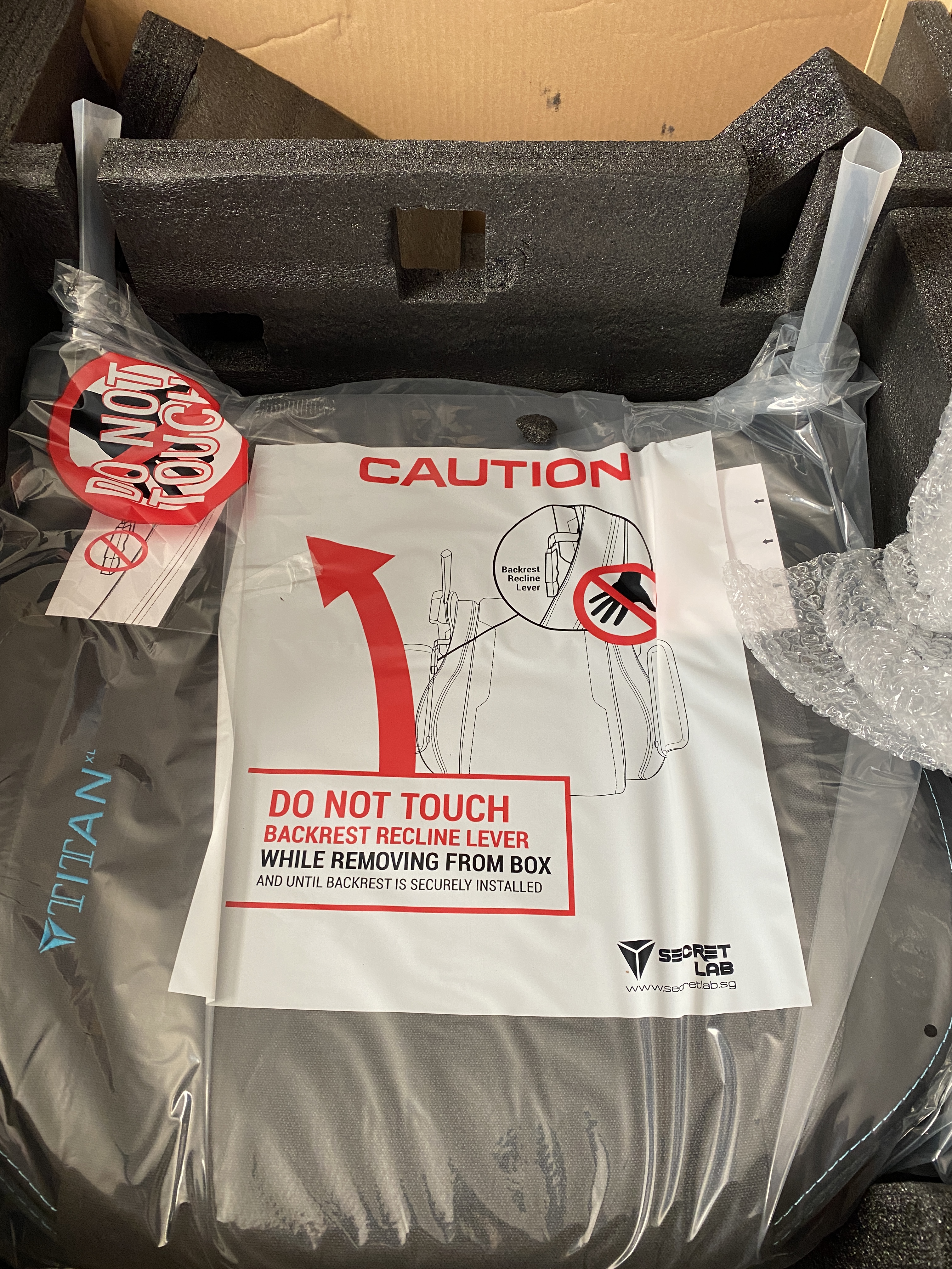 Ok, dawg, I got you. Don’t touch the backrest recline lever. I took the seat out of the box and took the plastic wrap off of it: