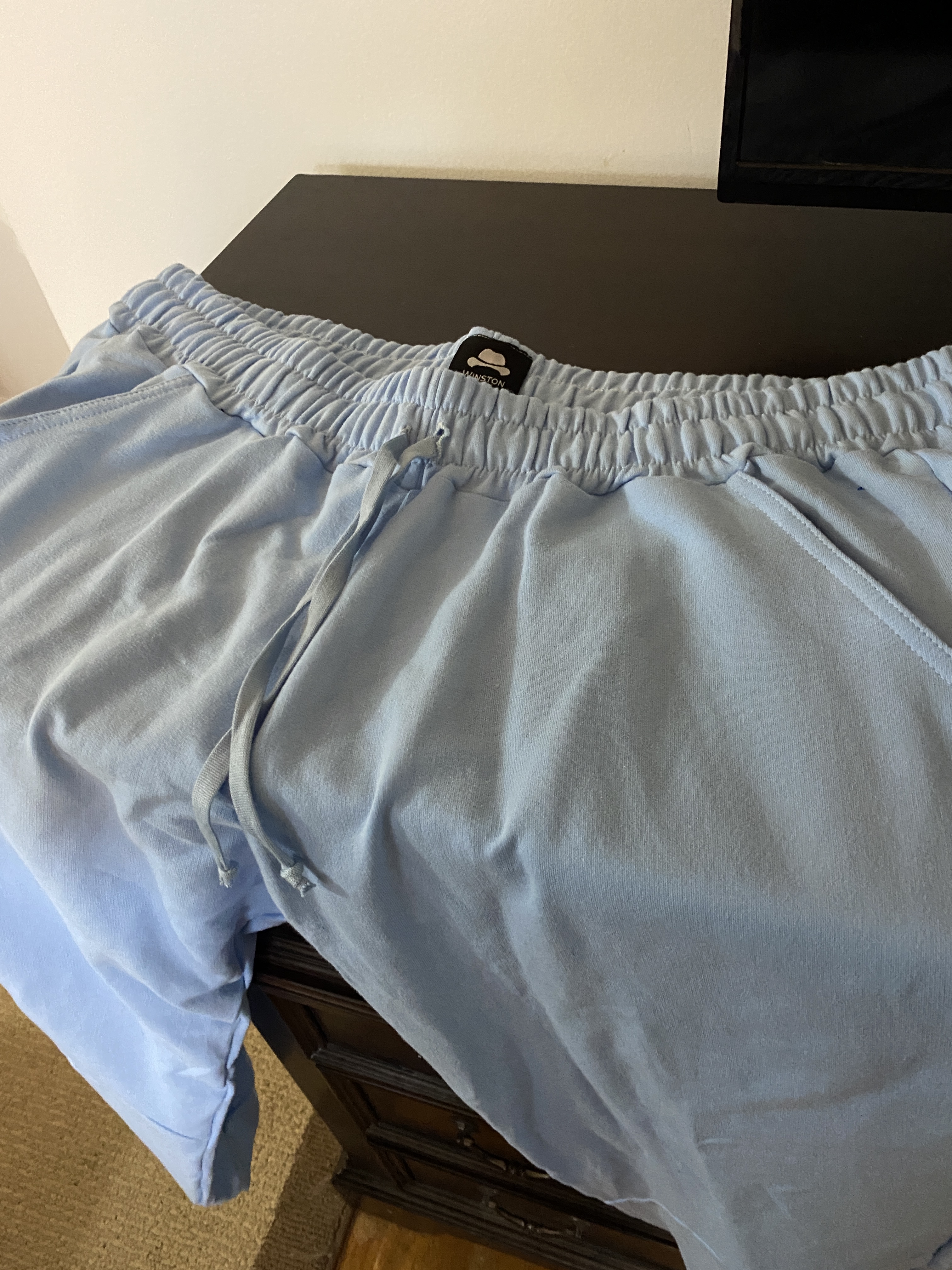 These are sweatpants and they are baby blue. They are never going to get worn outside the house under any circumstances and I’m really not the laze around in sweatpants guy. Even when I’m lazing about the house, I do it in jeans.