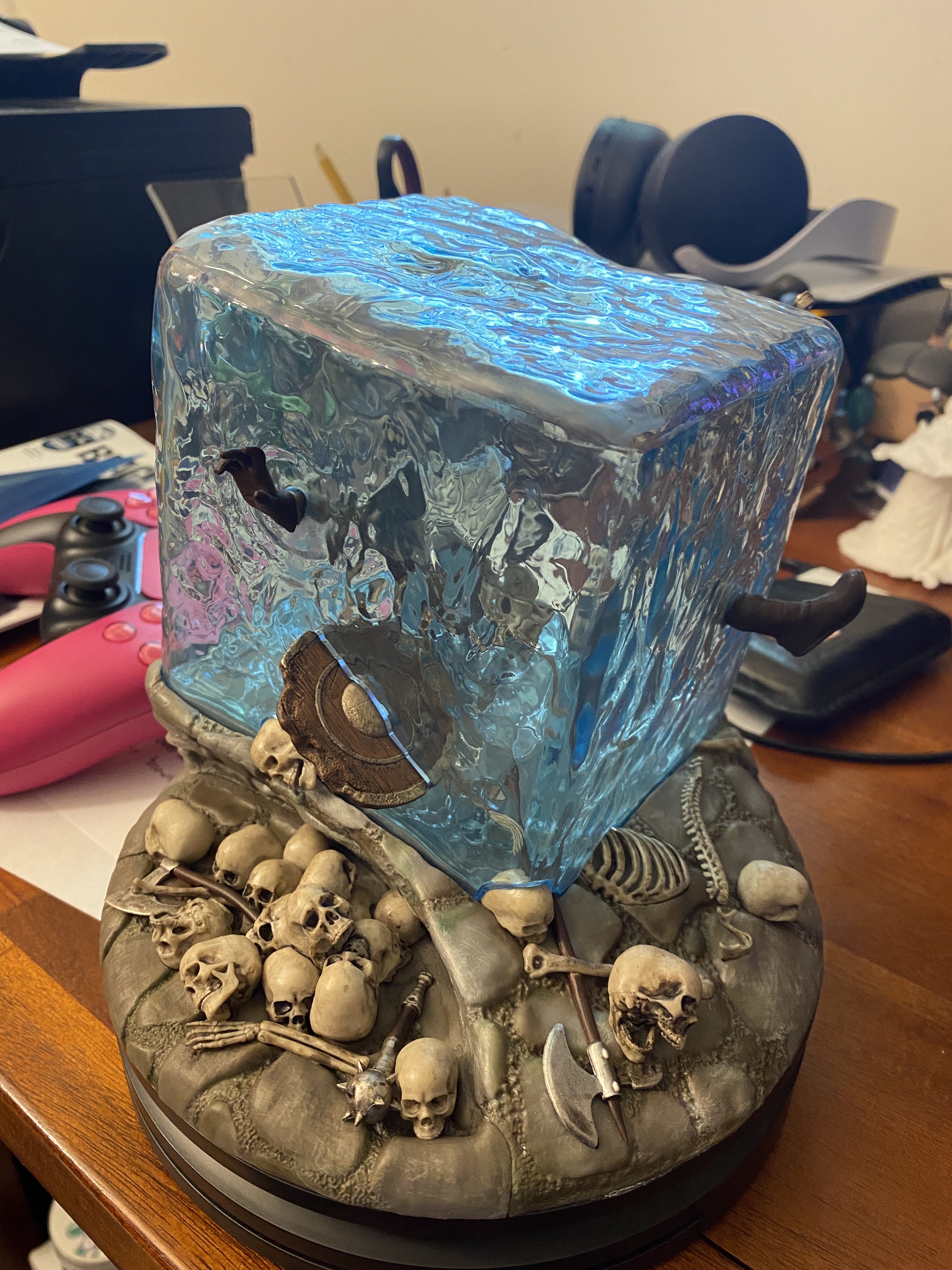 Fun fact: I got this from GameStop, where it’s apparently an exclusive product, and they offered either free 3-6 day shipping or $10 for overnight, which would have been same-day if I’d ordered when it wasn’t already nighttime. Normally I don’t worry about shipping speed, but for some reason I shrugged and went ahead and paid for it, only to discover that what they mean by “overnight shipping” is that they look to see if they have any at the stores in your area, and if they do, they fucking DoorDash the thing to you. Only they don’t tell you that right away, and there’s no way to tip the driver, nor is there any real indication of how much of that $10 goes to the driver who, in this case, had to drive all the way across town to bring me my stupid Gelatinous Cube statue. So I got her CashApp from her and tipped her that way.