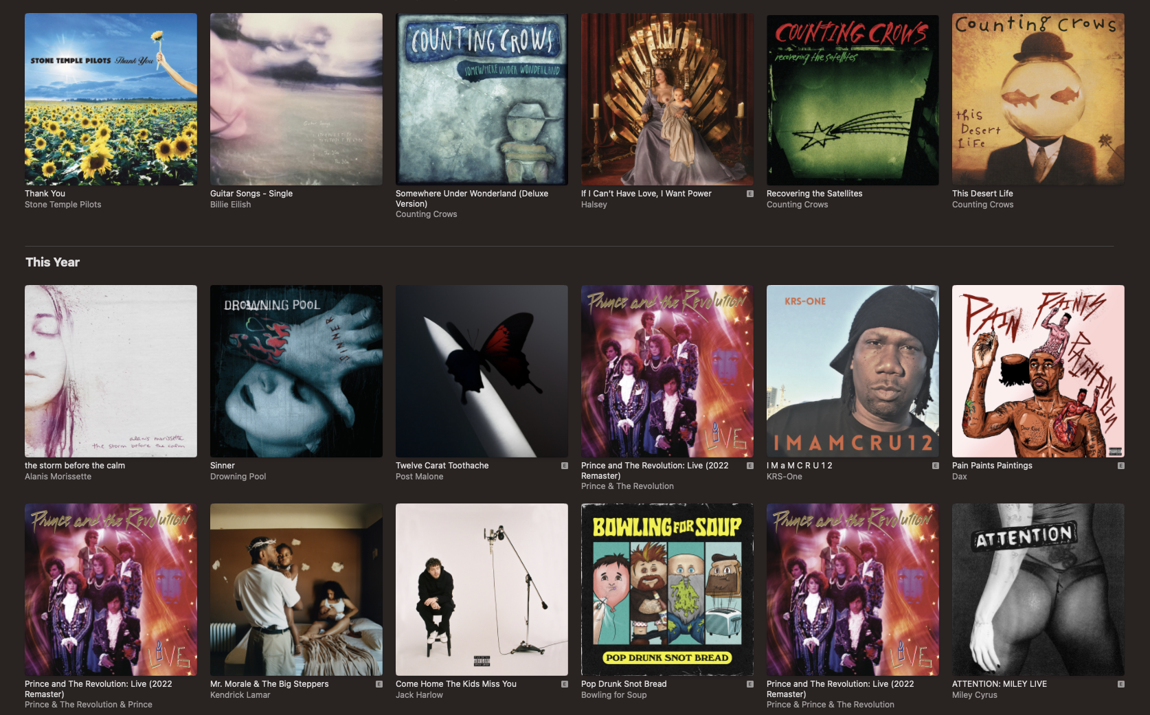 We’ll call that a top (ish) five (limited to new stuff) and offer this series of .jpgs so that you can see what else I bought this year. Anything that shows up twice is because Apple Music is stupid and I haven’t been able to fix it.