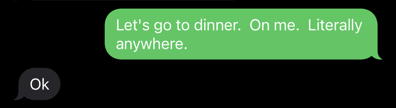 Post-Covid, we really don’t go out much any more. Maybe once a month at best. I don’t think anyone’s necessarily worried about catching something from going to dinner at this point, but however fucking many years it’s been since the Goddamned world ended have more or less permanently altered our dining habits. But I was twitching to get out of the house and go do something, and dinner would be easy, so we went to dinner.
