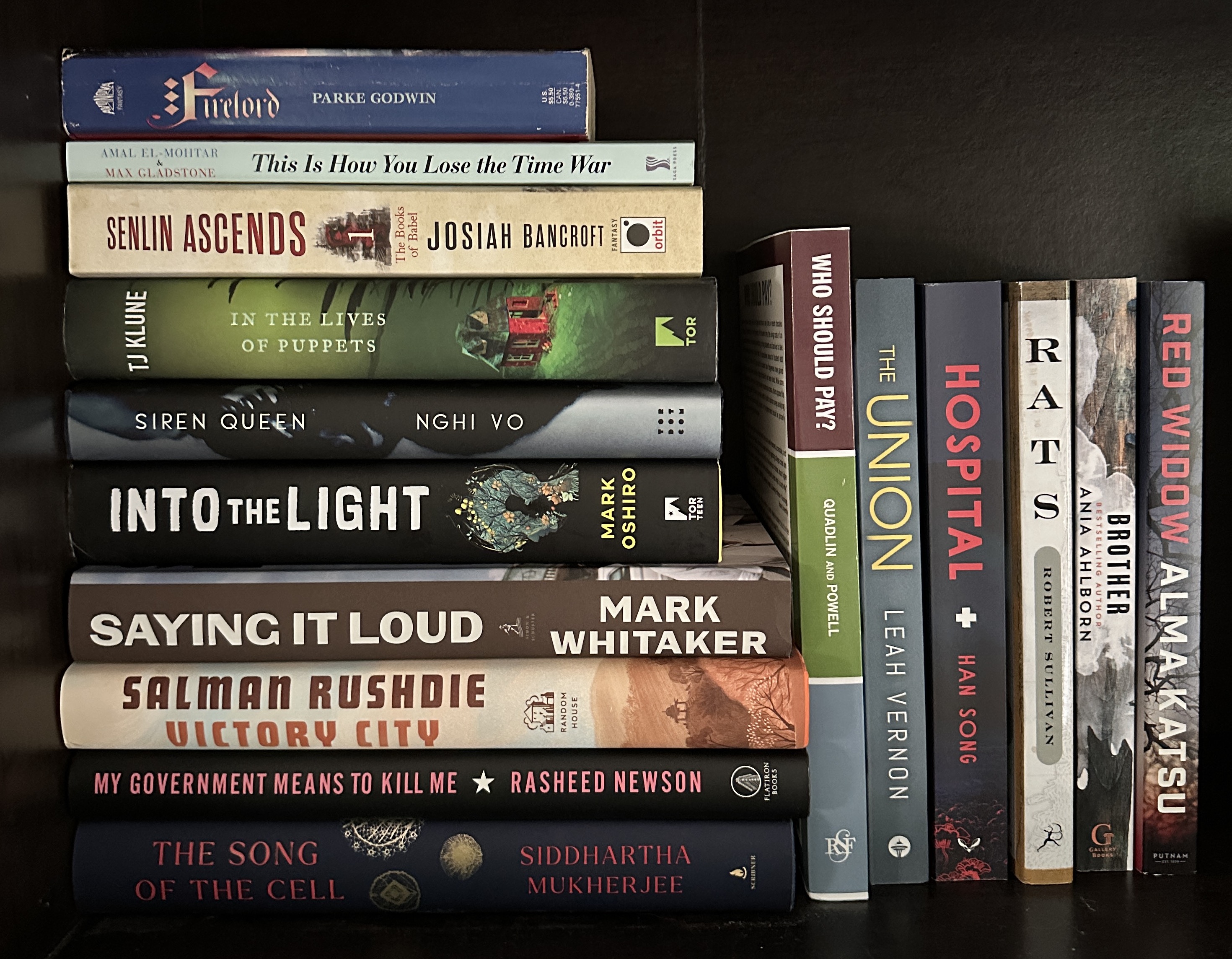 Rebecca F. Kuang has now written five books that I’m aware of: a military fantasy trilogy, an alternative-history dark magical academia novel, and Yellowface, a modern-day fictional memoir with no fantastic or spec fit elements at all, and I’ve absolutely loved everything she’s read. Kuang’s talent is astounding, frankly; she’s still only fucking 26 years old and no one her age should be able to write this well. I read Yellowface in about a day; it’s written from the perspective of a young struggling white female author, June Rowland, who is friends (exactly how close they really are is never clear, and there are very good reasons to believe we have an unreliable narrator) with Athena Liu, a Chinese-American author and a phenomenal talent whose early works have taken the literary world by storm. The two are at Liu’s apartment after a night of partying and drinking and Liu chokes to death, but not until after showing her friend her latest manuscript, which she’s not told anyone about. And when June leaves her apartment, many hours later, after dealing with the police and the EMTs and the trauma of watching a friend die in front of her, she does it with the only existing copy of the manuscript in her purse. Which she finishes and gets published under her own name. And, well … shenanigans ensue.