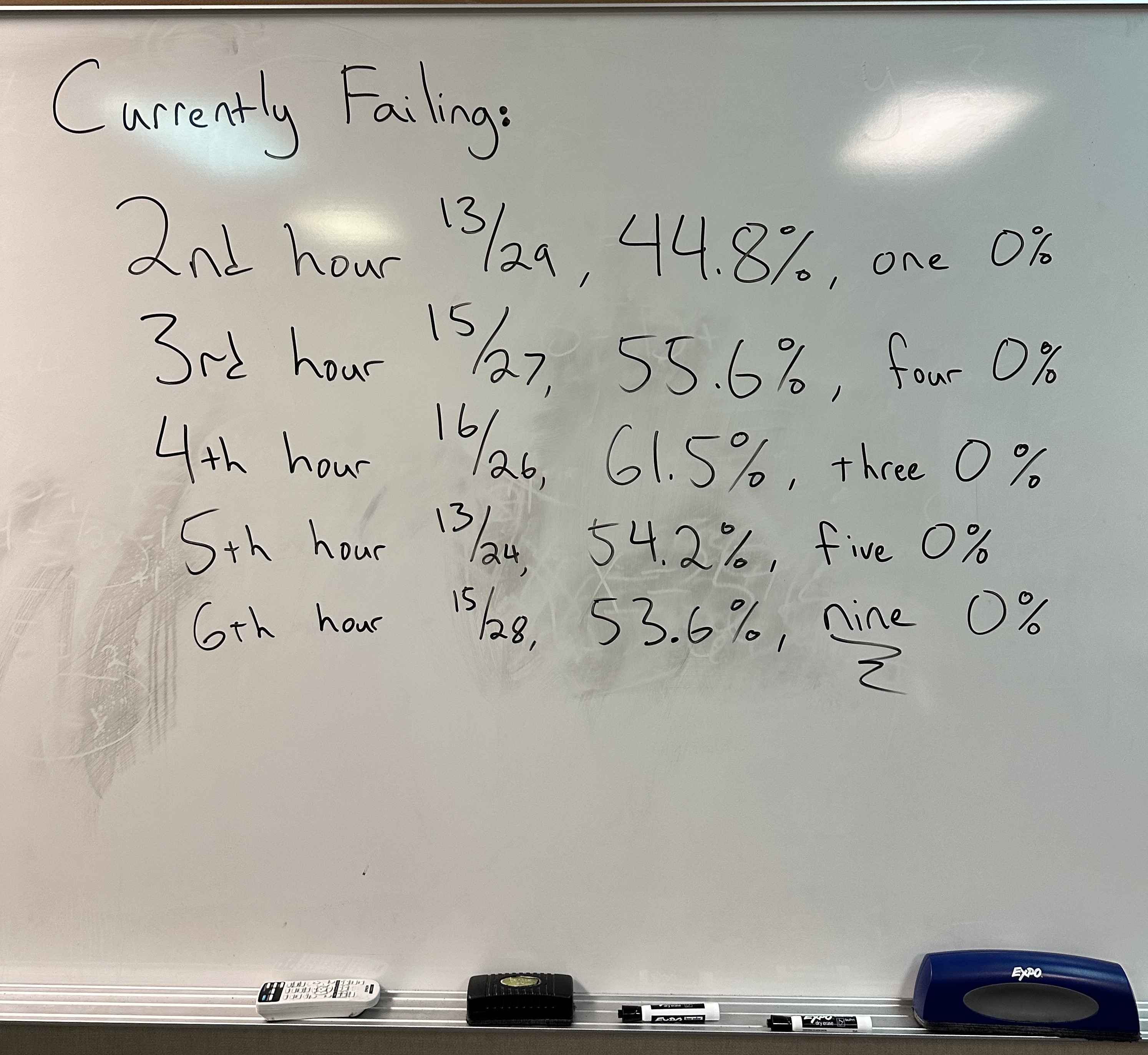 This looks terrible, I know, but the genuine truth is that it happens at the beginning of nearly every quarter, nearly every year. We are about to start the third week of the third quarter. At the end of a quarter kids get used to the idea that no one assignment is going to have a huge impact on their grades. Then they forget how averages work and suddenly they’ve missed one assignment and bam all by itself they’re down to a D or an F, because there have only been two or three assignments that went into the grade book in week two of the quarter.