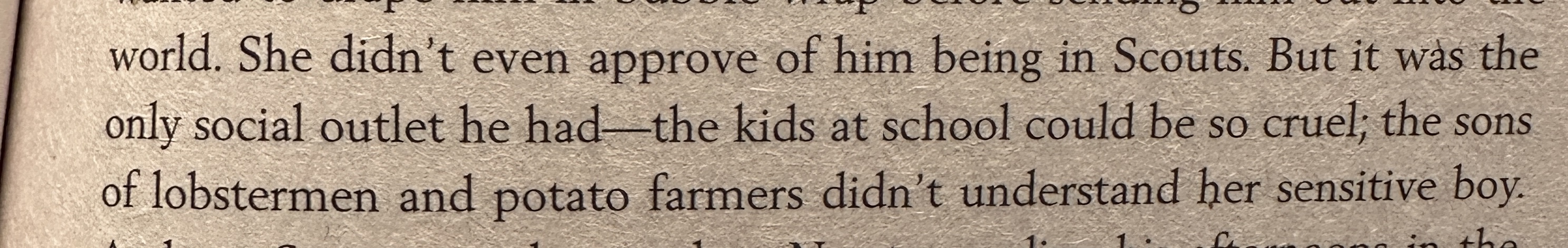 Let’s talk about how the book treats women. First of all, there aren’t any. Literally not a single line of dialogue from a woman in the book. One kid does think this about his own mother, though: