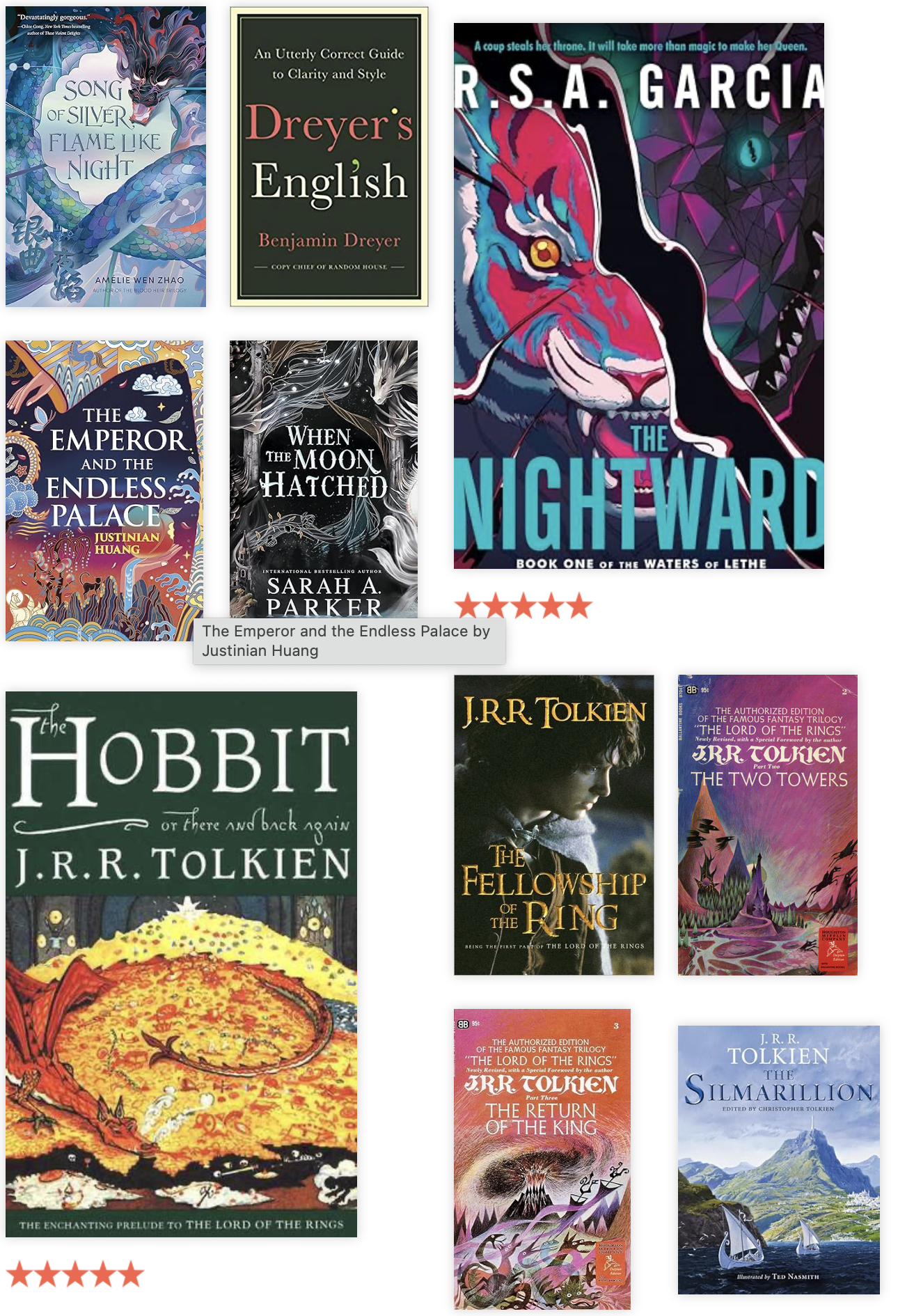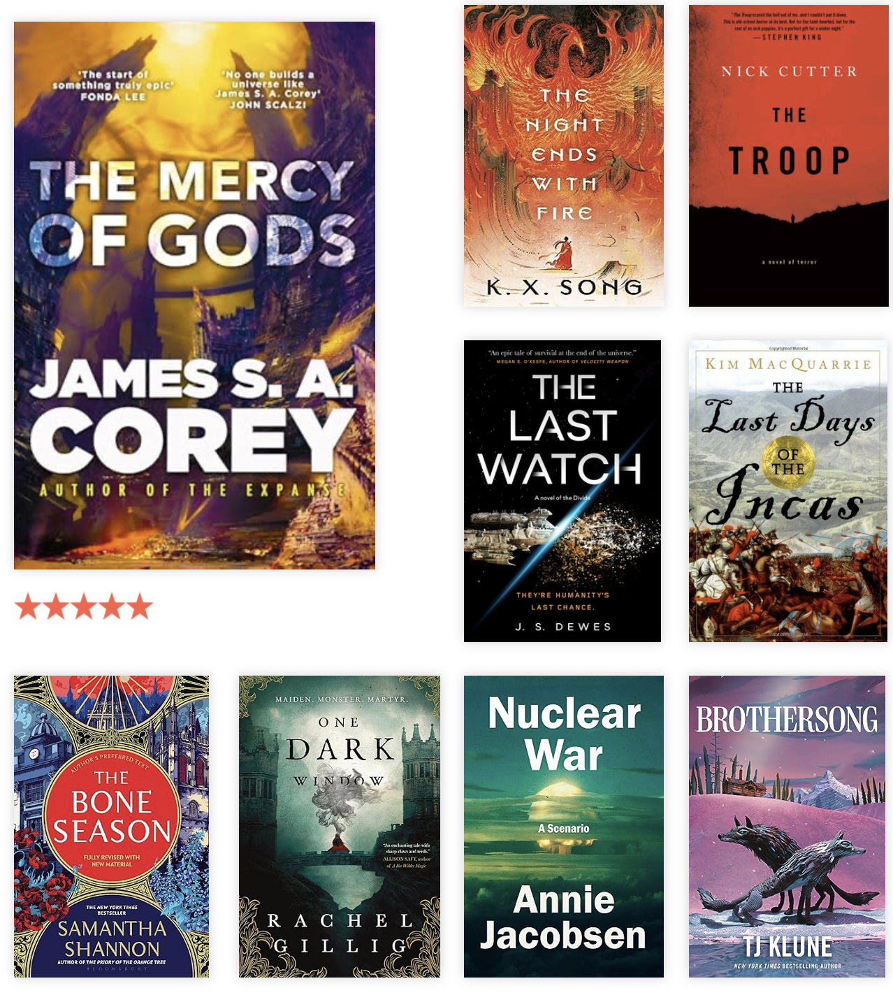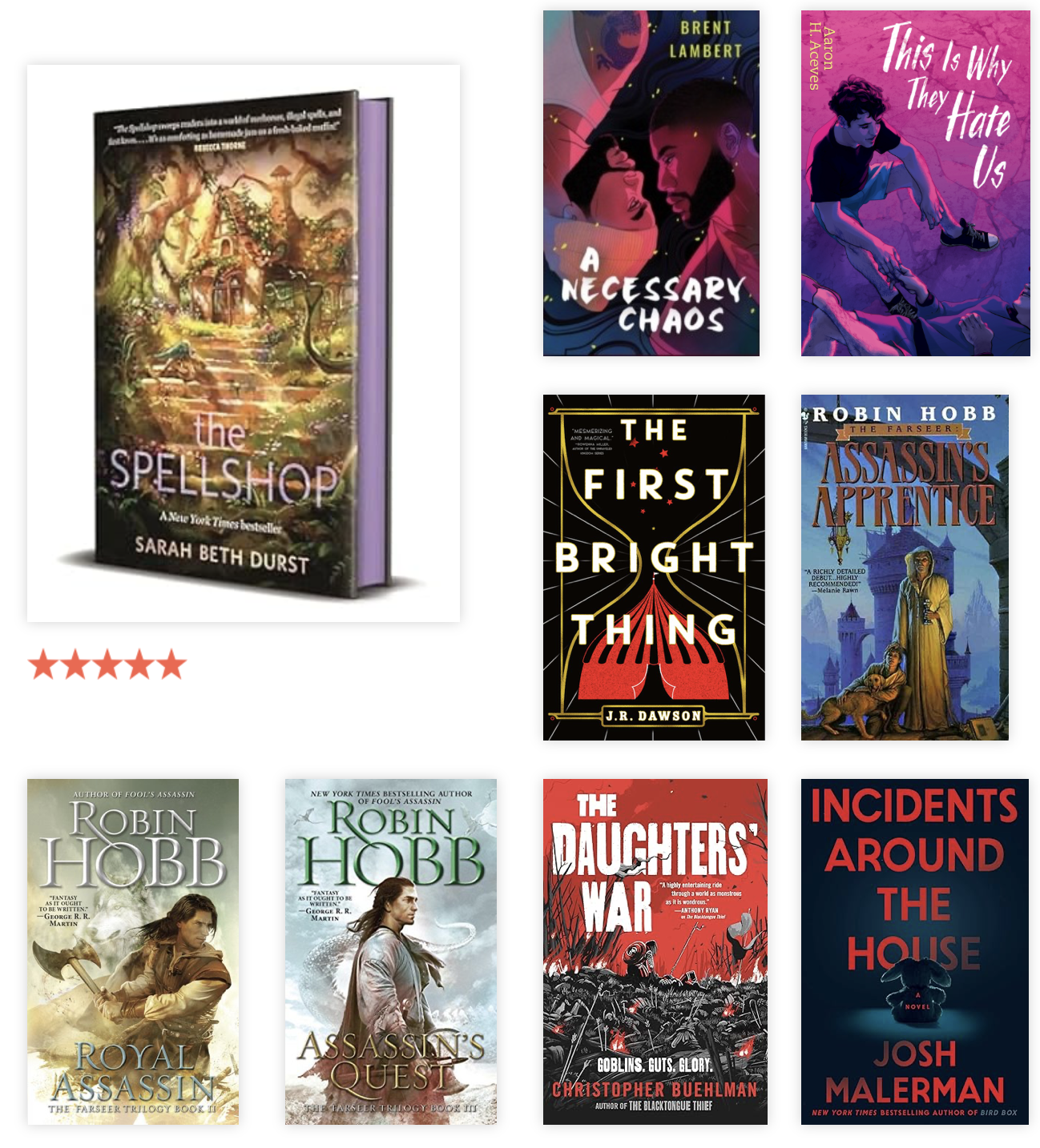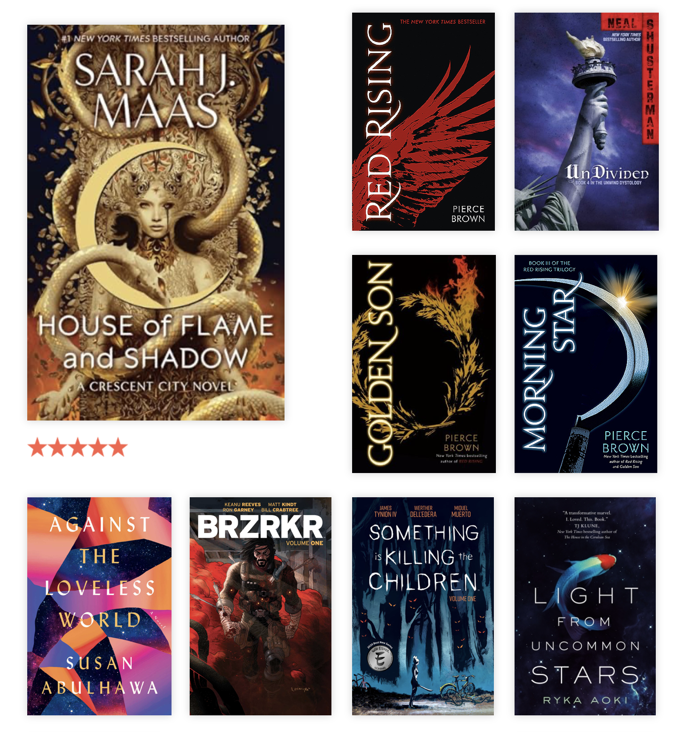 Honorable Mention, in No Particular Order: A Mystery of Mysteries: The Death and Life of Edgar Allan Poe, by Mark Dawidziak; The Honey Witch, by Sydney J. Shields; House of Hunger, by Alexis Henderson; The God and the Gumiho, by Sophie Kim; This is Why They Hate Us, by Aaron Acevedo; The Bone Ship Trilogy by R. J. Barker; Somewhere Beyond the Sea, by T.J. Klune; Blood at the Root, by LaDarrion Williams; The Vagrant Gods series, by David Dalglish; Morning Star, by Pierce Brown; Bookshops & Bonedust, by Travis Baldree, Moon of the Turning Leaves, by Waubgeshig Rice, and The Fury of the Gods, by John Gwynne.