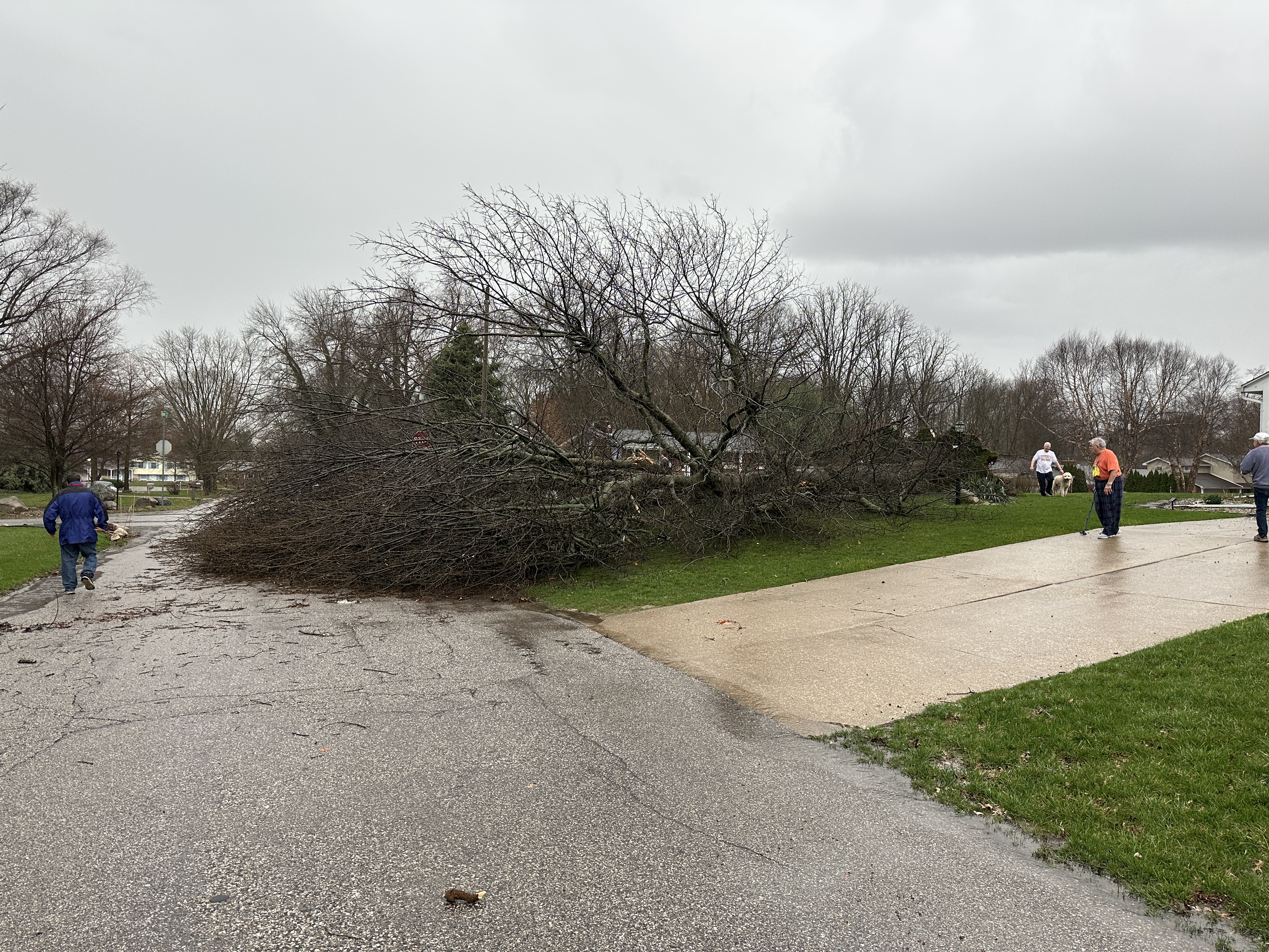 The final picture is from maybe 20 minutes later, rain still falling, as every Hoosier-ass dad in the neighborhood and their dogs went outside to wander around and look at the carnage. I may hop in the car soon and see how the rest of the area looks; supposedly there are a lot of power outages nearby but we’re fine.