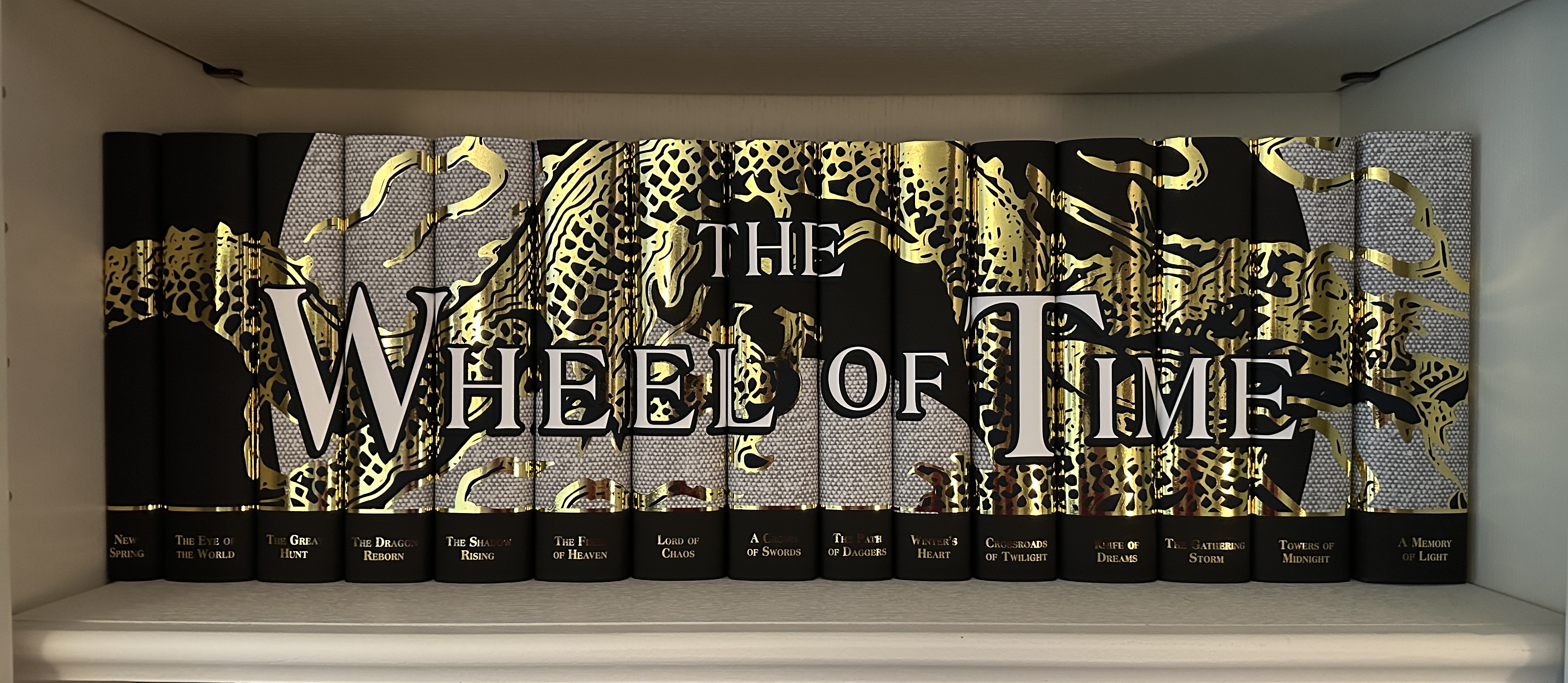 I posted these beauties not long after buying them, and they make me happy each and every time I walk past them, which was how I justified the $Jesusdon’task cost. The problem: despite their status as one of the non-negotiable canon series of fantasy literature, I haven’t finished the damn series. I’ve read the first … five? Six? and tried to reread/finish them a few years ago and had to tap out after the second book.