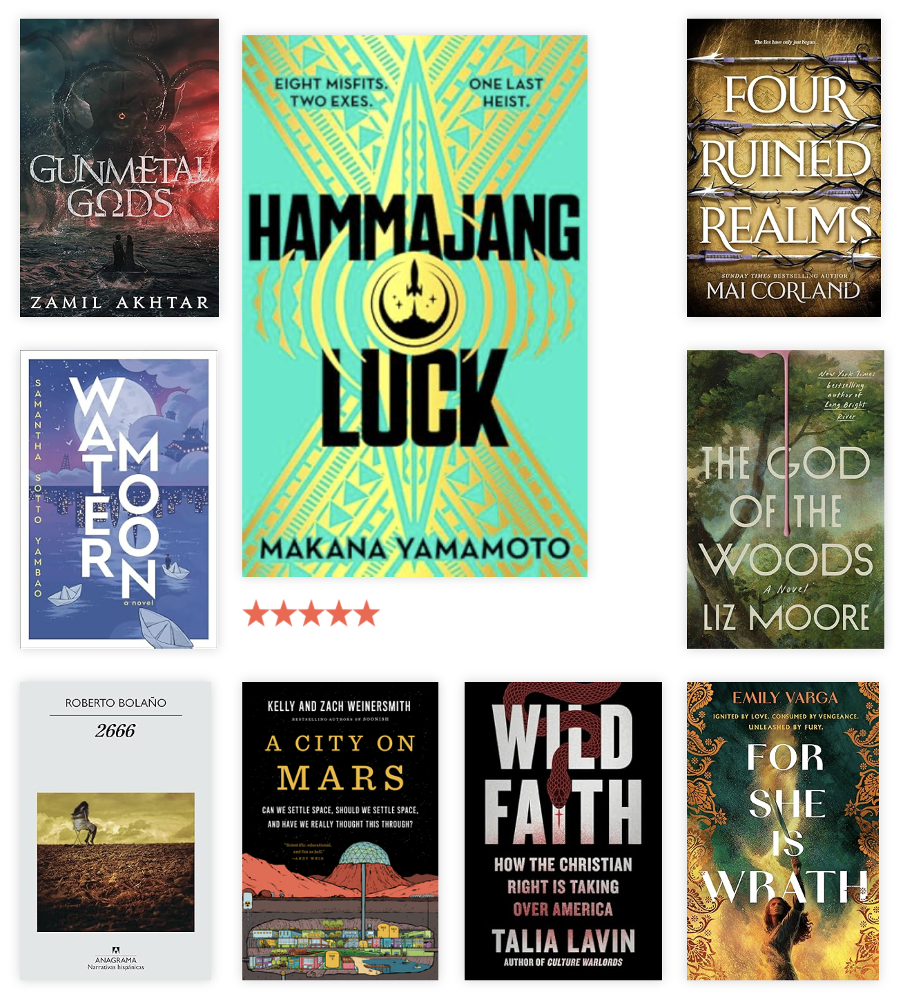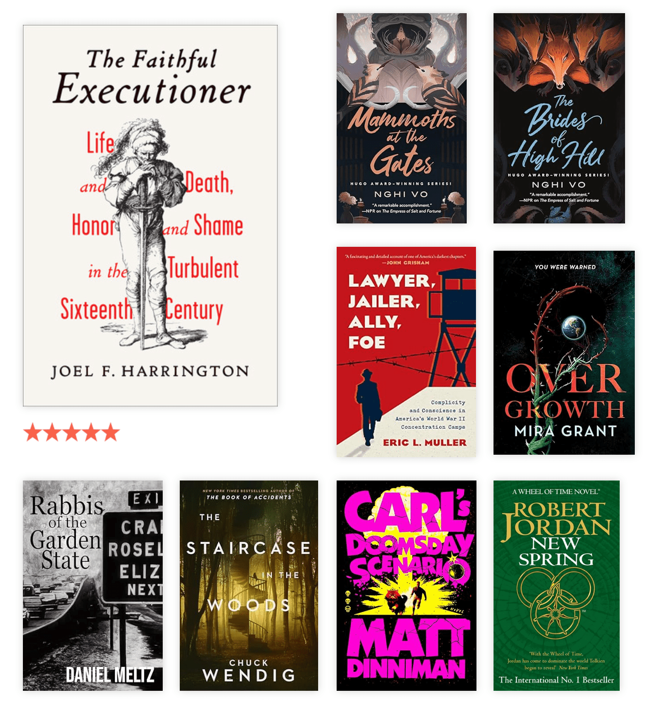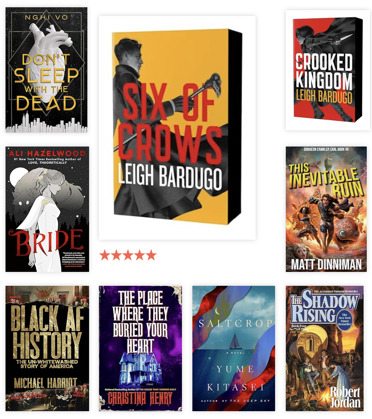 Average page length was 464 pages, which is another reason I’m thinking about moving more to digital. I read a ton of doorstoppers– according to Storygraph, ten different books were over a thousand pages. That’s nuts.