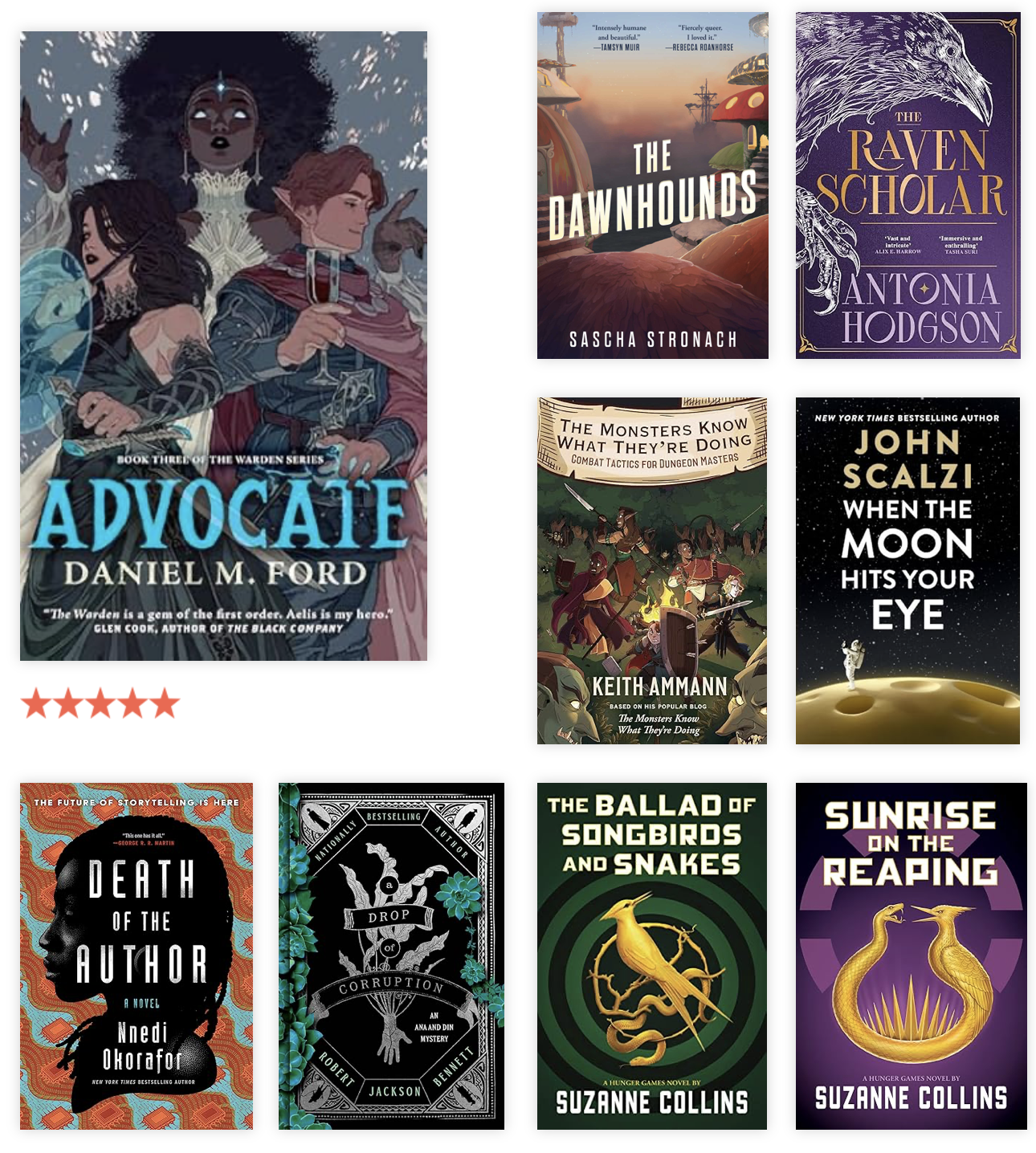 2 Books: Keith Ammann, Leigh Bardugo, S.A. Barnes, Suzanne Collins, Osamu Dazai, H.E. Edgmon, K.M. Enright, James Islington, Yume Kitasei, James Logan, John Scalzi, Adrian Tchaikovsky, Xiran Jay Zhao