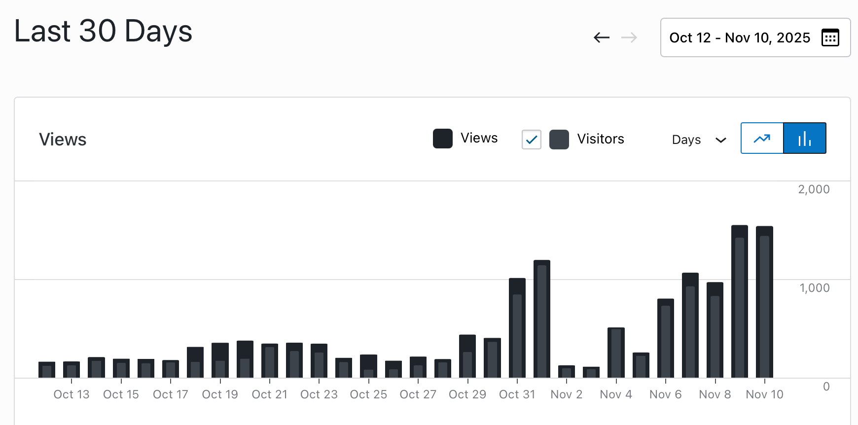 The 7200 from the US would nearly be the best month of the year all by itself. October 2025 was the best month in years, and November should pass it tomorrow. It looks like my traditionally big posts are getting the lion’s share of this traffic, but the numbers aren’t adding up, which is weird, and I feel like this also pushes back on the bot theory– would thousands and thousands of bots be indexing the same post over and over again?