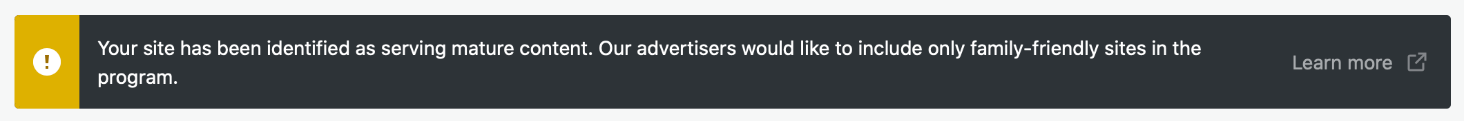 I dunno if it’s something I can appeal or not, and I don’t really know if I want to, but after seven years of writing at this place and putting, at this point, a decent chunk over a million words into it, I’m not entirely averse to the idea of making a buck or two off of it here and there. I don’t know that I agree that I “serve mature content,” though. Sure, I don’t censor my language most of the time, but that’s just profanity. It’s not like I’m sharing porn around here.