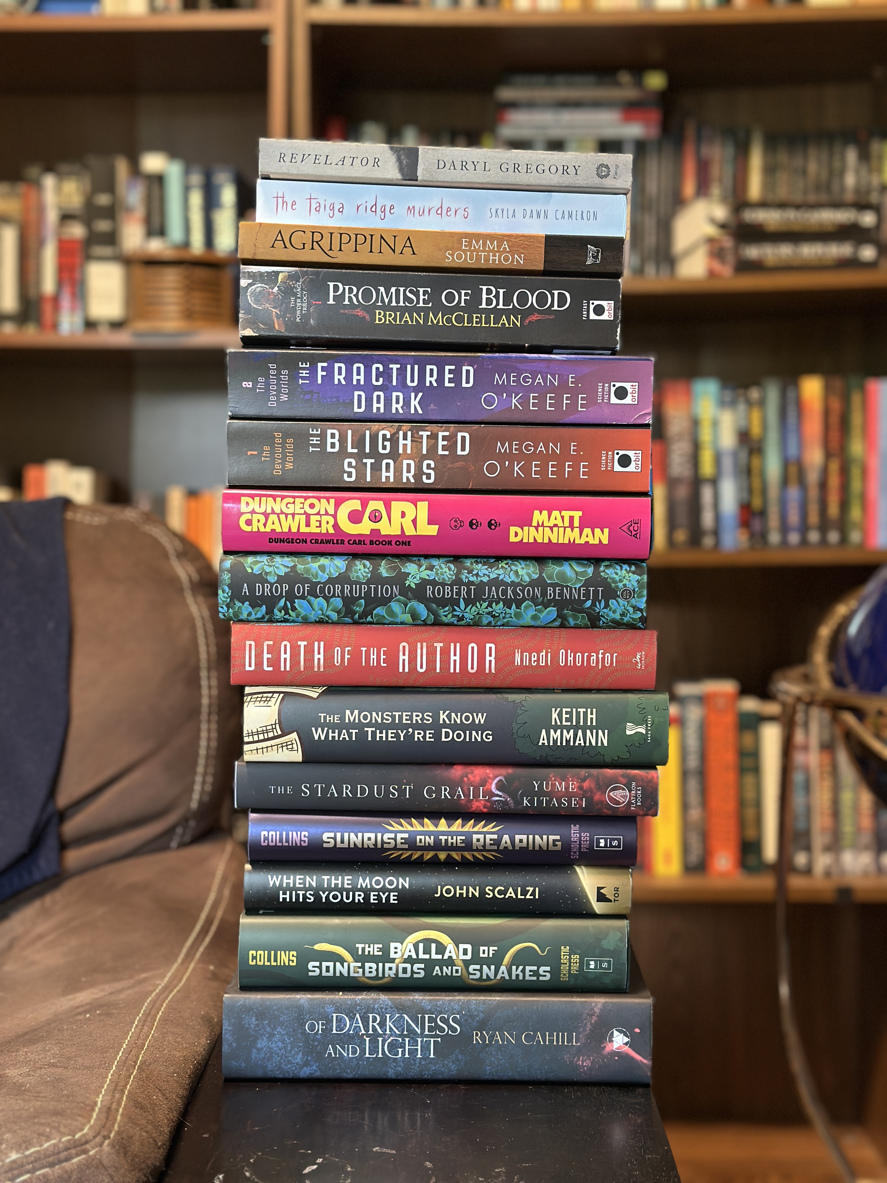 Which, uh, can you tell I focused on fantasy/sci-fi series fiction this year? Because holy shit. I am trying my damnedest to clear my TBR right now, and I’m seriously thinking about making a rule that I can’t buy anything other than sequels to series I’ve started until the damn shelf is either clear for the first time in several years or really close to it. I’ve got a few books on preorder that I’m not about to cancel but if I don’t make any discretionary purchases in 2024 until I’ve got it cleared … hell, that’s still probably three months, easy. Sigh.