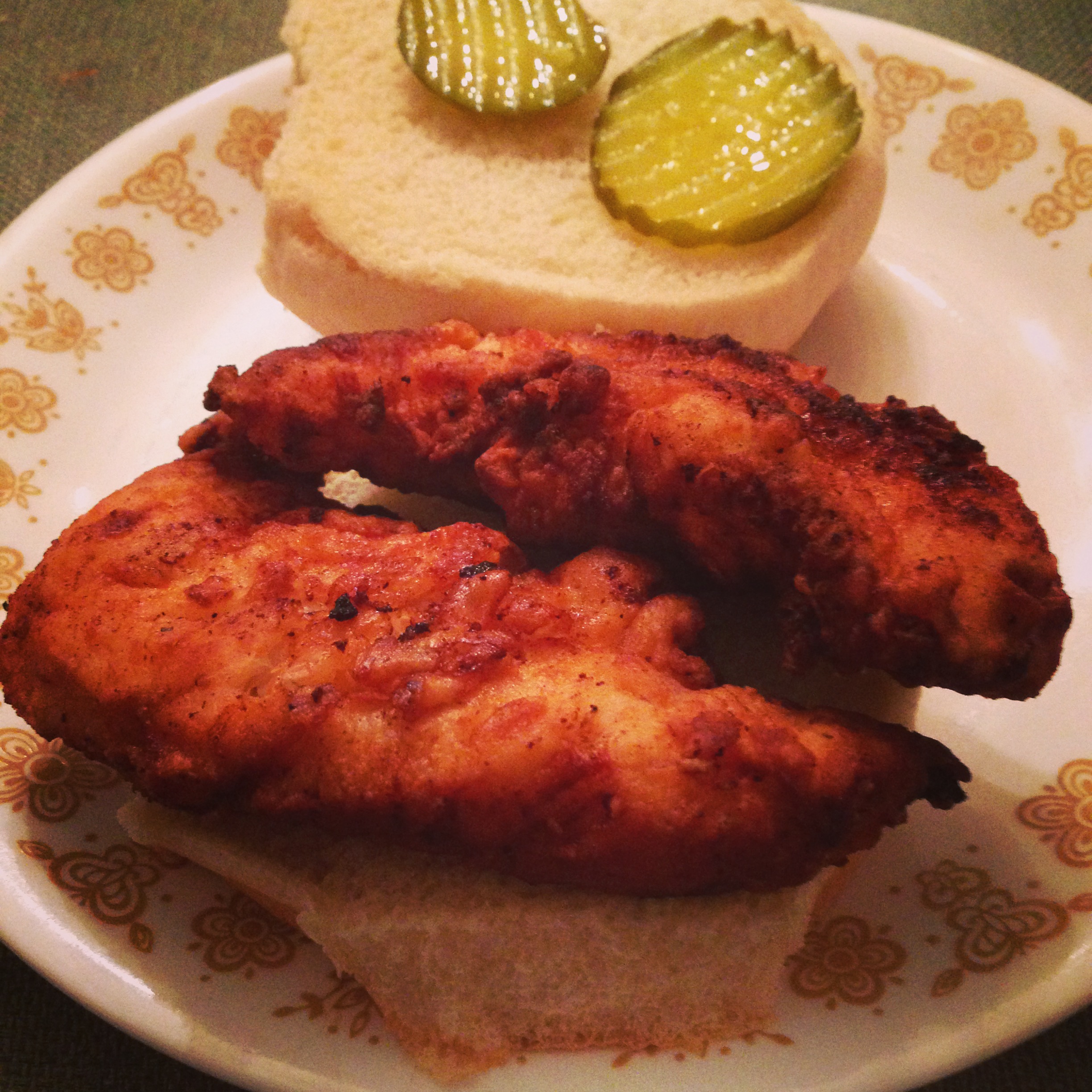 Serve on a white bread bun, preferably heavily buttered and then slightly toasted in the oven (note that we didn’t do this), with exactly two pickle slices, preferably pickle slices dripping with pickle juice and pressed into the top bun.  And one more thing: mine didn’t quiiiite taste right until I sprinkled a couple turns of sea salt directly onto the meat.  Once I did that, other than the slight under breading, they were perfect.  And marriage-equality-friendly, too!  Wheeee!