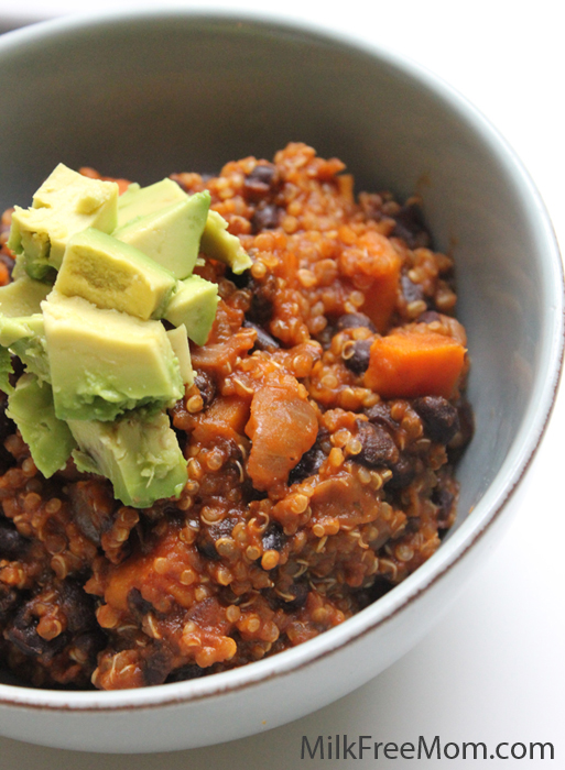 Doesn’t look that much different from the original picture, does it? All told I made very few changes to the original recipe for vegan quinoa & sweet potato “chili”; at one point I considered adding some extra tomatoes and almost put in two potatoes instead of one, but at the end the only change I made was adding a jalapeño, a decision I feel pretty damn good about and will be repeating whenever I make this again.