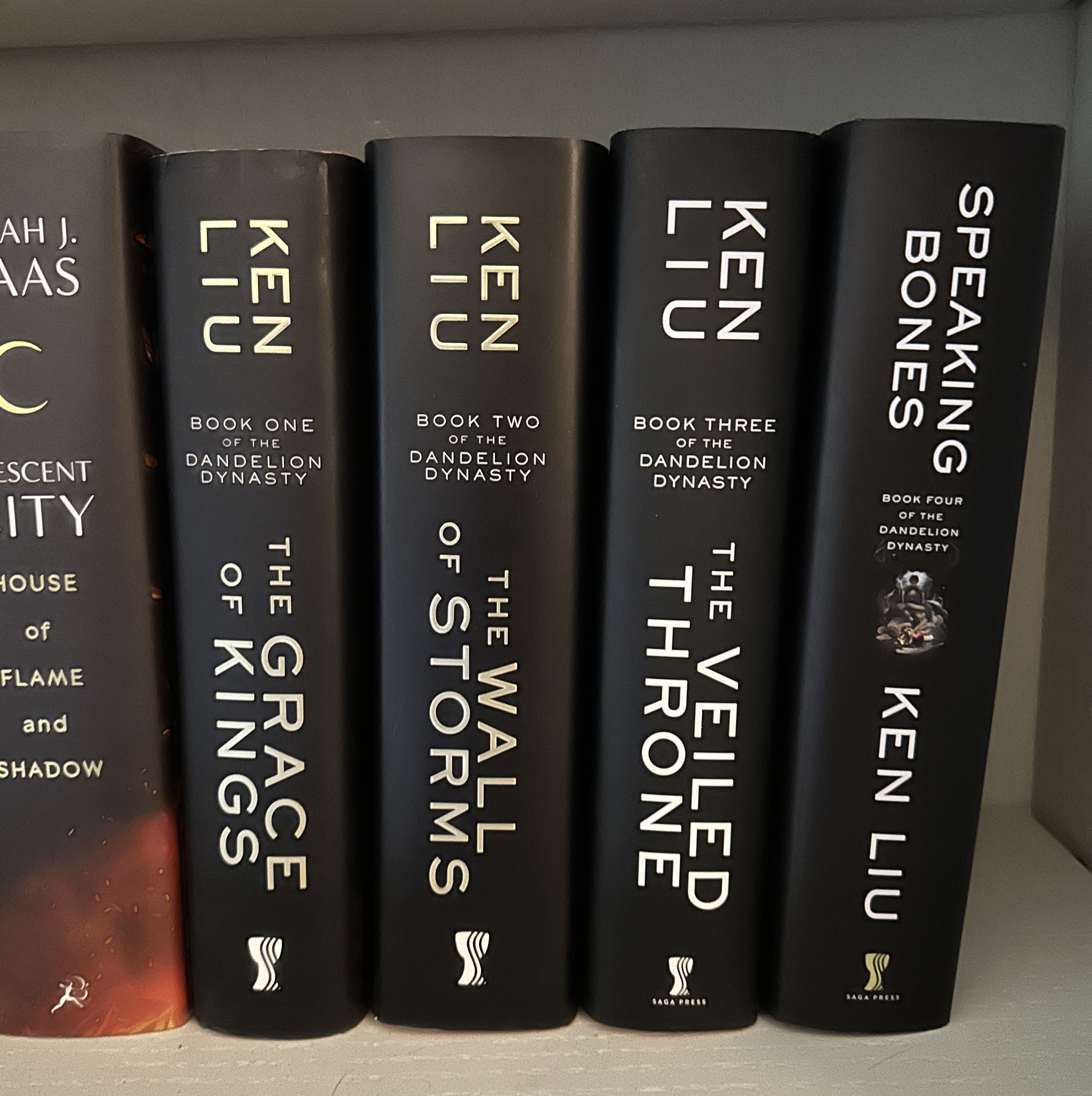 I’ve never really liked the covers to the Red Rising books, particularly the specific ones I own. If you look really closely at the dust jackets in the top cover you’ll notice a couple of small tears in Golden Son and a rub mark in the bottom of Iron Gold, both signs that I got the books from Amazon, because I wouldn’t have bought them from a physical store with flaws in them. Those awesome covers are not new books– I actually special-ordered custom dust jackets from Juniper Books to replace the original dust jackets on my hardcovers. Which I’m keeping, of course, although I’m not entirely sure why.