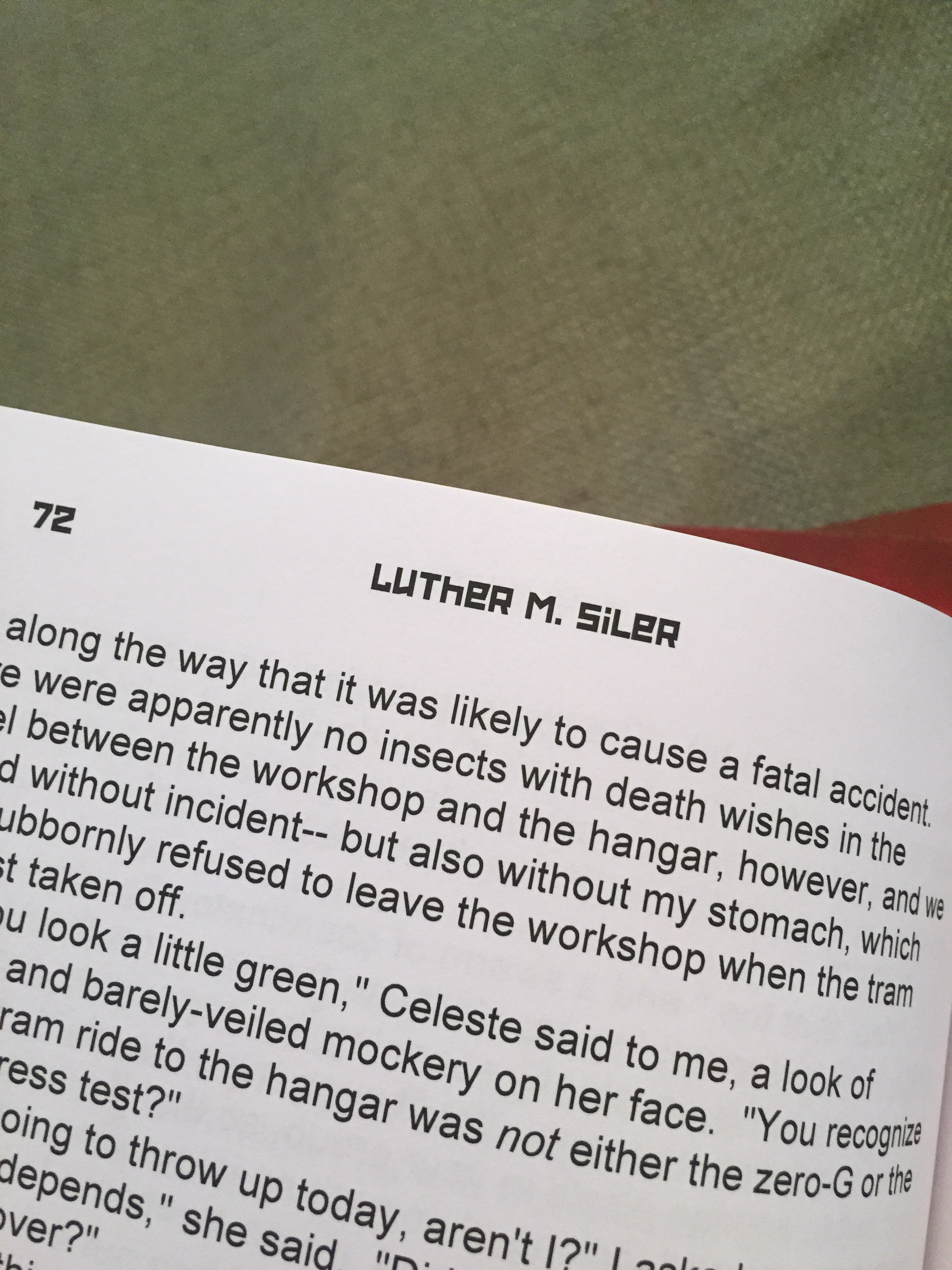 That was supposed to be in all-caps, and somehow not only did I fail to hit the Caps Lock key while typing it, I failed to notice the fucking mistake until it was in my hands. And while my wife and a couple of helpful Twitter folks claimed it didn’t look bad, I cannot abide this font in lower-case, particularly that “e”. So it had to be fixed. Also fixed, unnecessarily: adding some space to the front of each chapter and switching the cover from matte to glossy at my wife’s suggestion.