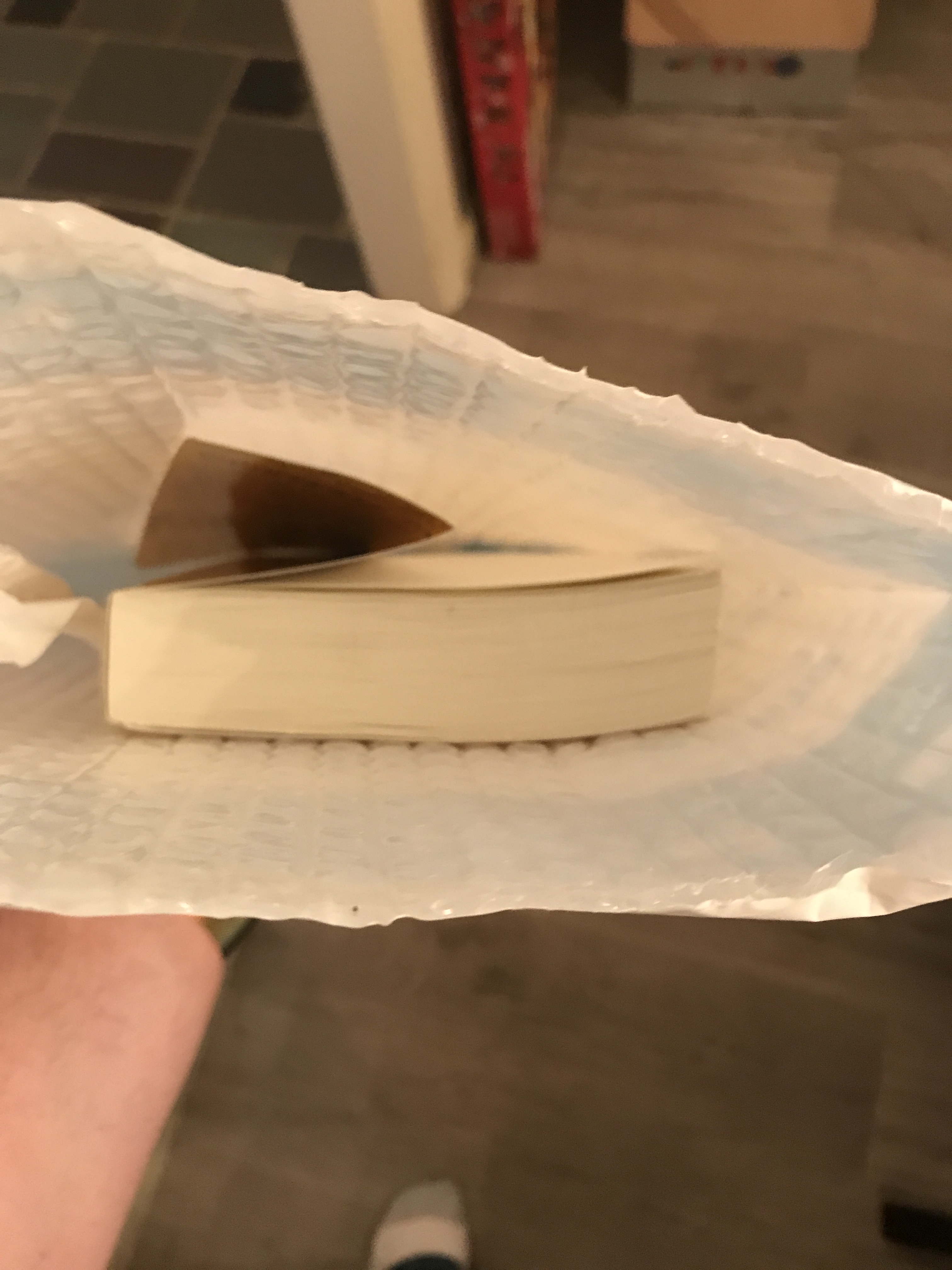This book is already borderline unsalable, just because of the cover. If it were for me, I’d be kinda pissed, but I’d probably not do anything about it, because books are made of paper and shit happens. This isn’t for me. It’s for someone else. So we are already sending this book back.