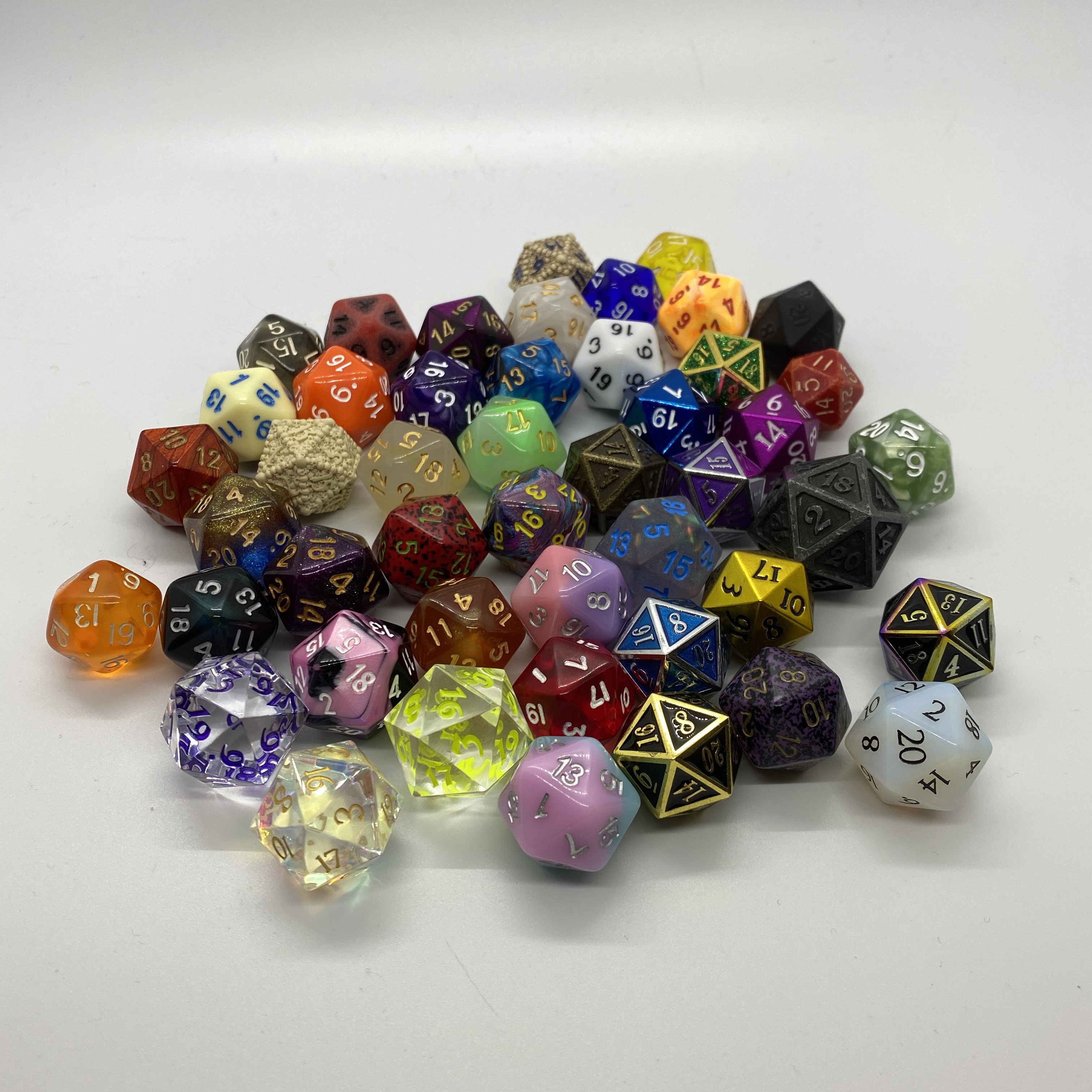 … not for roleplaying, mind you– for buying dice. I took my son to the Griffon yesterday and it somehow managed to end up costing me fifty bucks, coming home with a new set of dice for him and my wife (each) and several totally unnecessary new sets of dice for me, including that metal d20 right in the middle there. I have, since then, taken to perusing Amazon for full sets of metal dice, since the Griffon’s metal collection appears to be limited to individually purchased d20s and not entire sets.