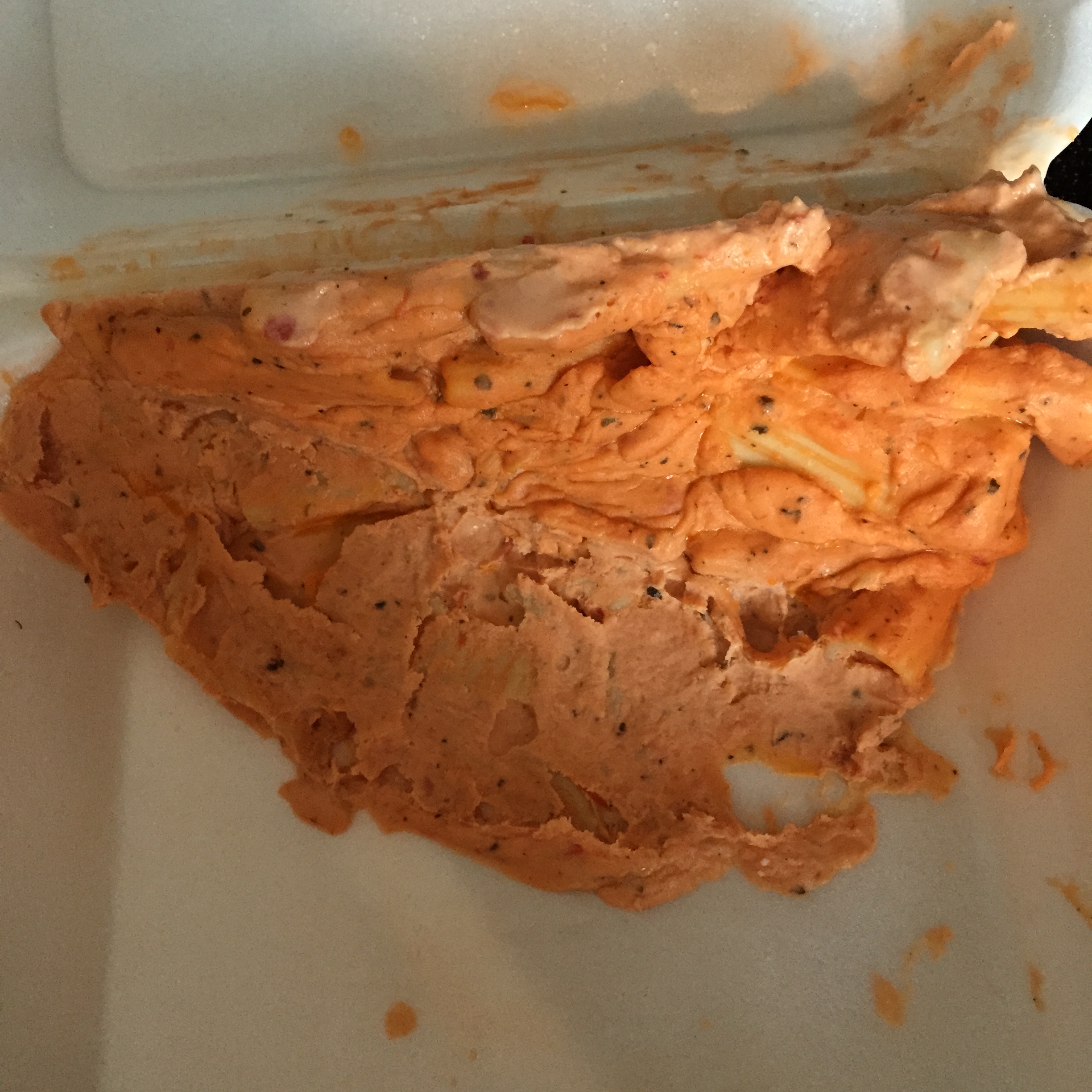 I am going to be charitable and assume that we were afflicted with a novice chef last night. Because while it has got to be true that there has been some point before last night that I couldn’t finish a meal at a restaurant because of how terrible I thought it tasted, I certainly can’t remember it– or it fits into some sort of special case where I was deliberately experimenting with something exotic and it turned out that I was overreaching.  Because if this shit is the best vodka sauce anyone has ever tasted, I have a frozen meal to recommend to you.  Because I am not joking when I say I would rather have Weight Watchers Mini Rigatoni with Vodka Cream Sauce for every meal for the rest of my life rather than eat the food at Polito’s again.  This shit was inedible.  I have looked at several different recipes for vodka sauce since we got home last night, and not one of them mentioned black pepper as a primary component of the dish, so the fact that this goddamn thing was swimming in black pepper has to represent some sort of error somewhere.  I’m not kidding.  I am a fat man, goddammit, and for better or worse I have been conditioned over my entire life to not leave uneaten food on my plate.  I couldn’t finish a quarter of this shit.