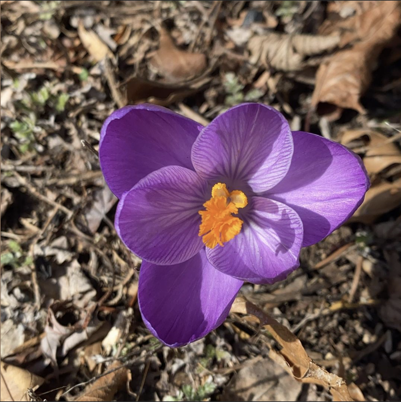 This little guy comes up al by his lonesome every year right around this time, in the little patch of what used to be vines and is now a weedy hellscape right outside our front door. You can see that nothing around it is really alive yet, and none of the trees are budding (well, barely, maybe, a couple of them) and the grass is still basically dead. So this little flower– which, again, is all by itself and wasn’t planted there on purpose– is really the earliest sign of impending spring that we get.