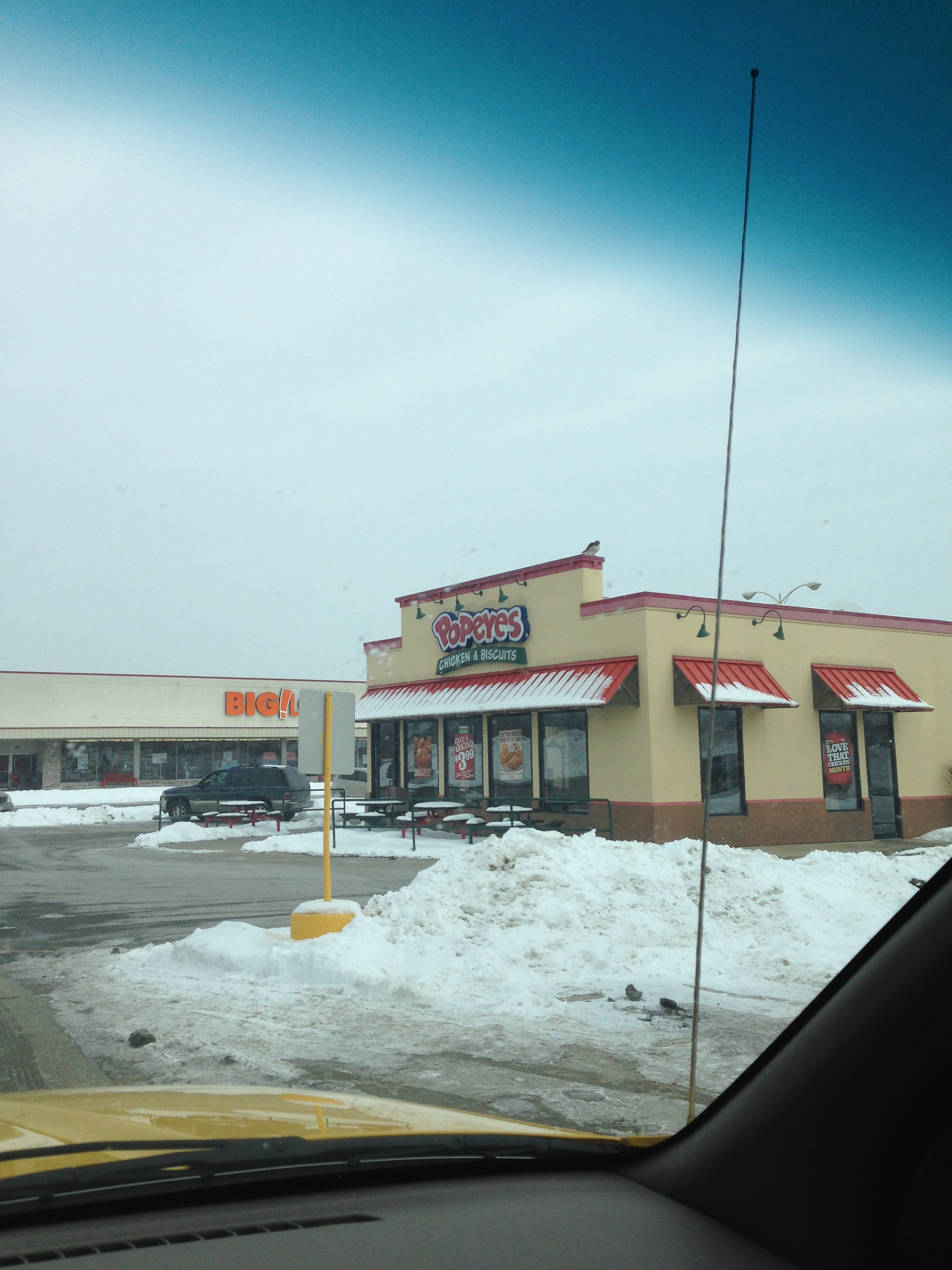 I made the first turn and had to slam on my brakes, because there was an honest-to-God red-tailed hawk just chilling in the parking lot two feet in front of my car. I almost hit him. That close. Scrabbling for my phone ensued, but the beautiful bastard flew away just as I was pulling up the camera app…