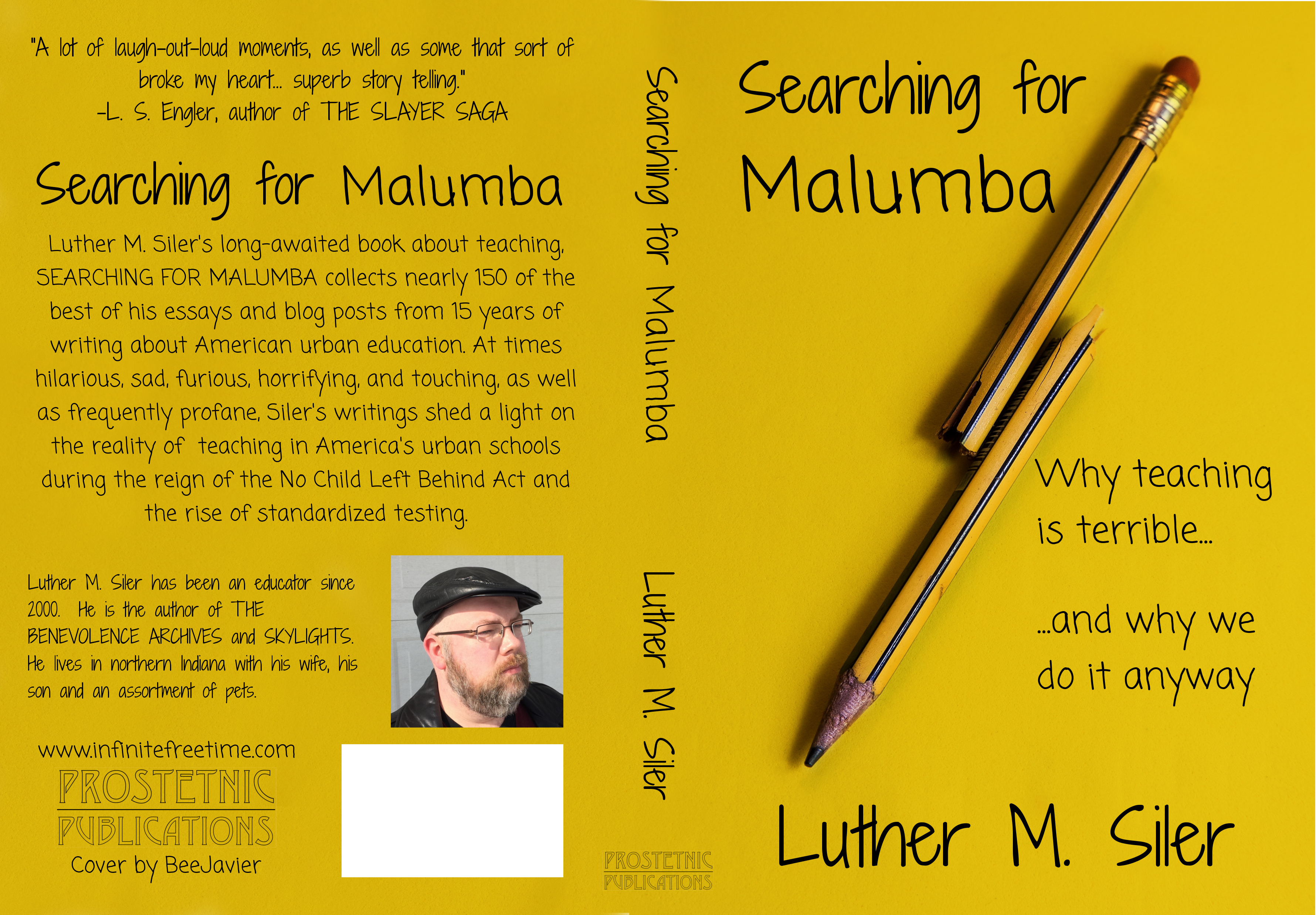 Luther M. Siler’s long-awaited book about teaching, SEARCHING FOR MALUMBA collects nearly 150 of the best of his essays and blog posts from 15 years of writing about American urban education. Alternately hilarious, sad, furious, horrifying, and touching, as well as frequently profane, Siler’s writings shed a light on the reality of teaching in America’s urban schools during the reign of the No Child Left Behind Act and the rise of standardized testing.  Available as an ebook and in print.