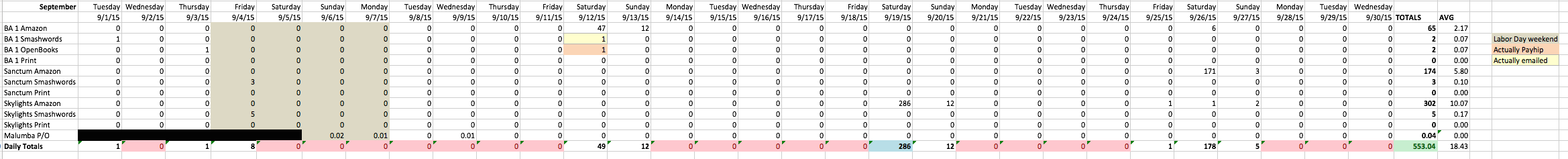 My reach on social media, incidentally, is way longer now than it was back then. What does this tell me? It tells me that Amazon is a lot busier in July than it is in September. This fits with previous anecdotal evidence, but it’s nice to have some confirmation.