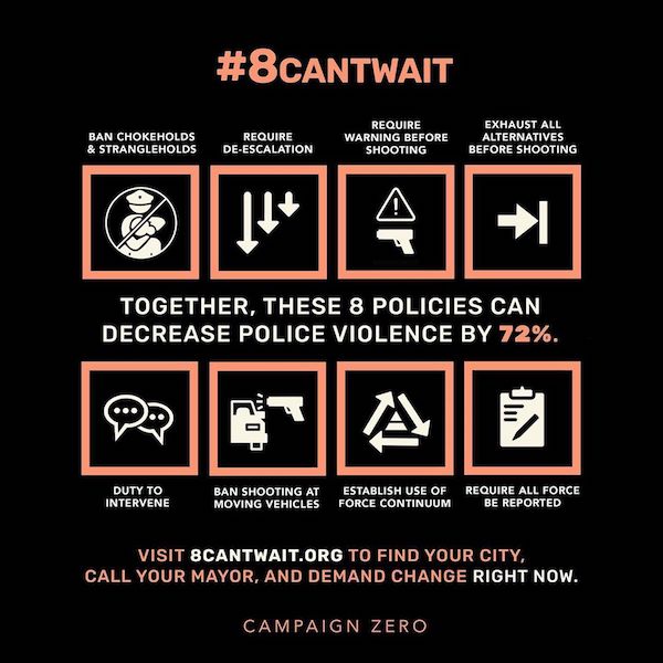 And then there are organizations like #8cantwait, which has its own problems, namely surprisingly dodgy statistics and studies for something Sam Sinyangwe has put his name to, as he’s always seemed like a pretty straightforward guy. I would take that 72% number with a grain of salt. But I do think that enacting these types of policies would, in fact, reduce police violence, and even if the goal is (laudably!) to eliminate police violence, maybe we do things that aren’t going to get us all the way there in one stroke anyway because they’ll help? Some of those 8 items would even increase police budgets, or at least would without commensurate cuts elsewhere– training costs money, for example– and that’s an automatic nonstarter for (some of) the Defund folks, especially the Defund/Abolish wing. I’m willing to spend some extra taxpayer money if it keeps people alive.
