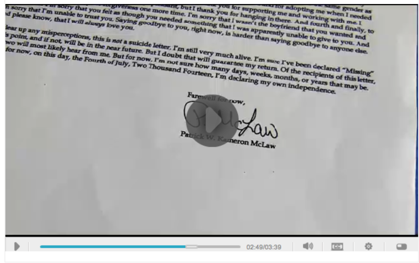 The second shot is from the last page, and is much clearer, and gives just enough detail to make it clear why people read the letter and called the cops.  Weird thing about suicide letters:  saying “This is not a suicide letter!” is actually not very convincing.