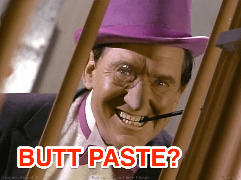 I look up Butt Paste on the Internet, which sadly is probably not the oddest search I’m going to perform on the Internet this week. It turns out that there is a product specifically called Butt Paste. Check the URL: you find it at buttpaste.com, which should not be a website for medical supplies. However, frighteningly, that is not the Butt Paste that I’m looking for.