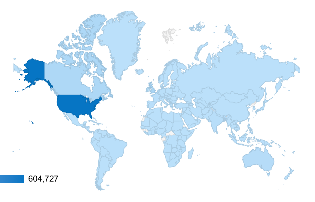 Seriously, what’s going on here? October 31 was the highest traffic day since 2015 until November 1, which was the highest traffic day since 2015 until yesterday, which was the highest traffic day since 2015 until– goes and looks— oh, basically right now, since I’m 7 views short of yesterday’s numbers. Engagement doesn’t really seem to be going anywhere and I’m not seeing anything weird in what limited data I’m getting from referrals, and while the immediate impulse is to suspect bots, if they are bots, has WordPress suddenly lost the ability to keep them from showing up in our statistics? Or turned it off? A lot of this traffic is from China but the last couple of days it’s been mostly American. Here’s the geography numbers: