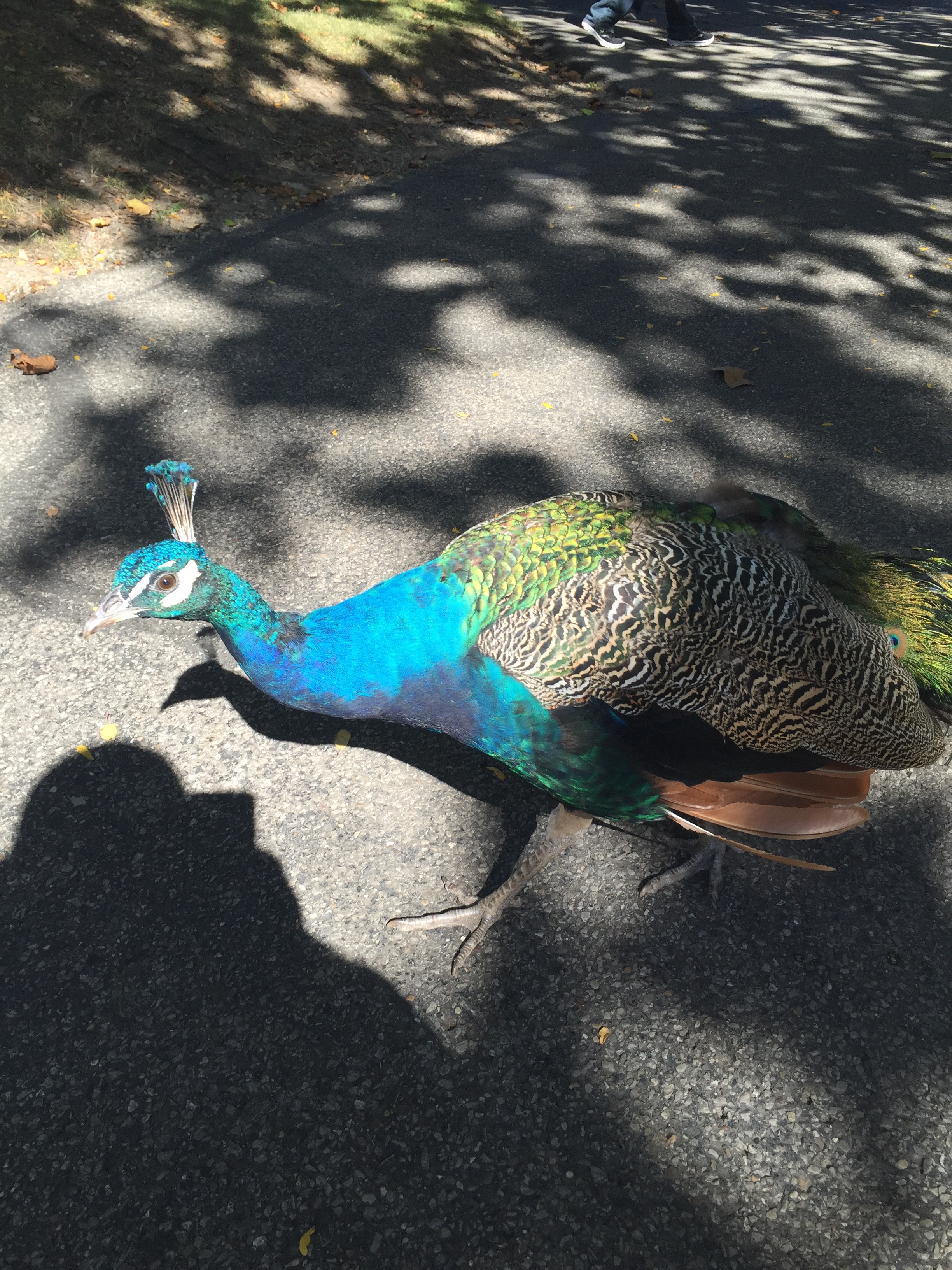 They have two peacocks; they just let them wander around.